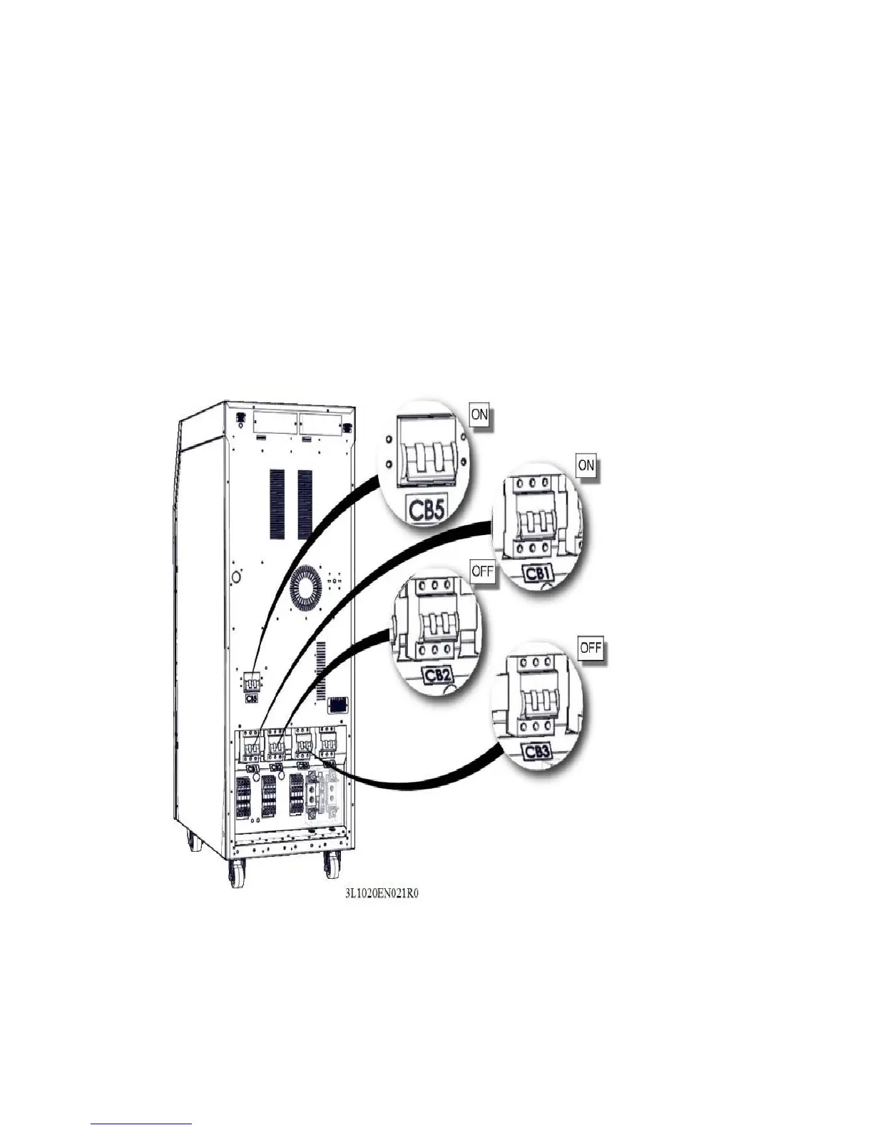 3. Turn input circuit breaker (CB1) ON. If there is an external bypass input, put the external
