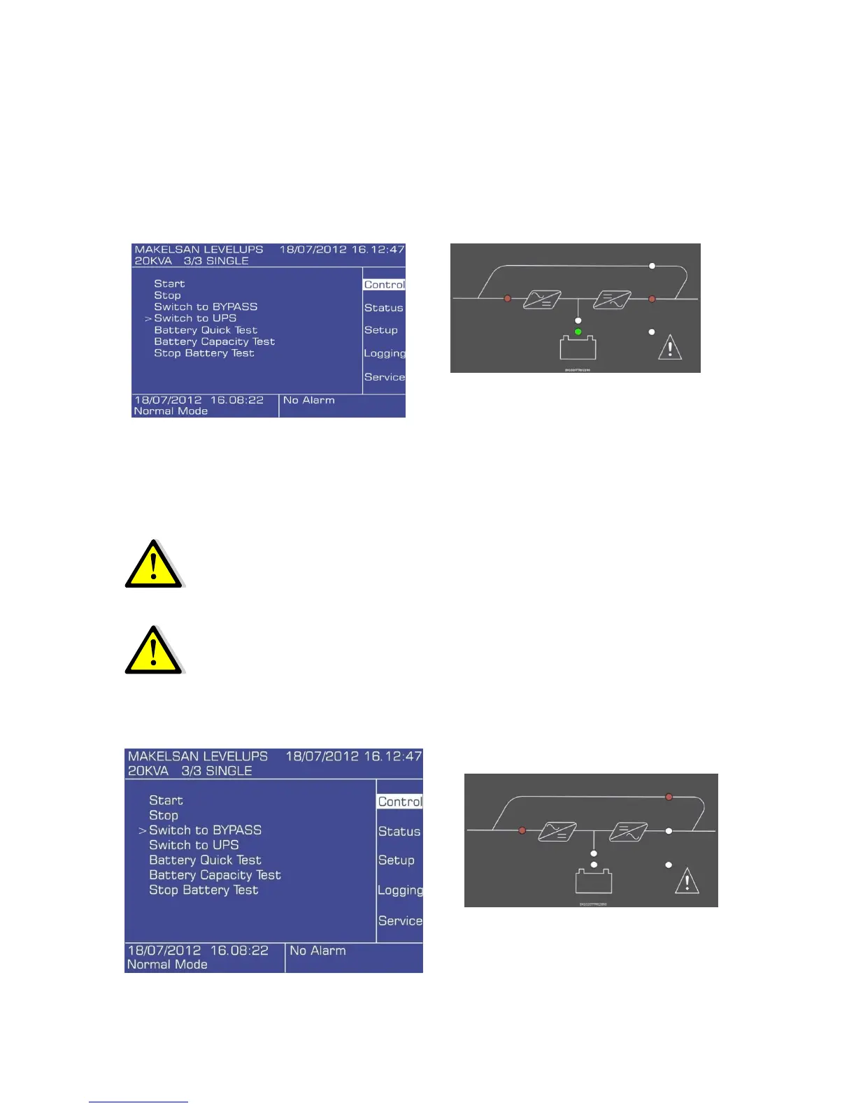NOTE: the UPS will not switch to normal mode if the inverter voltage is out of limits, or there is