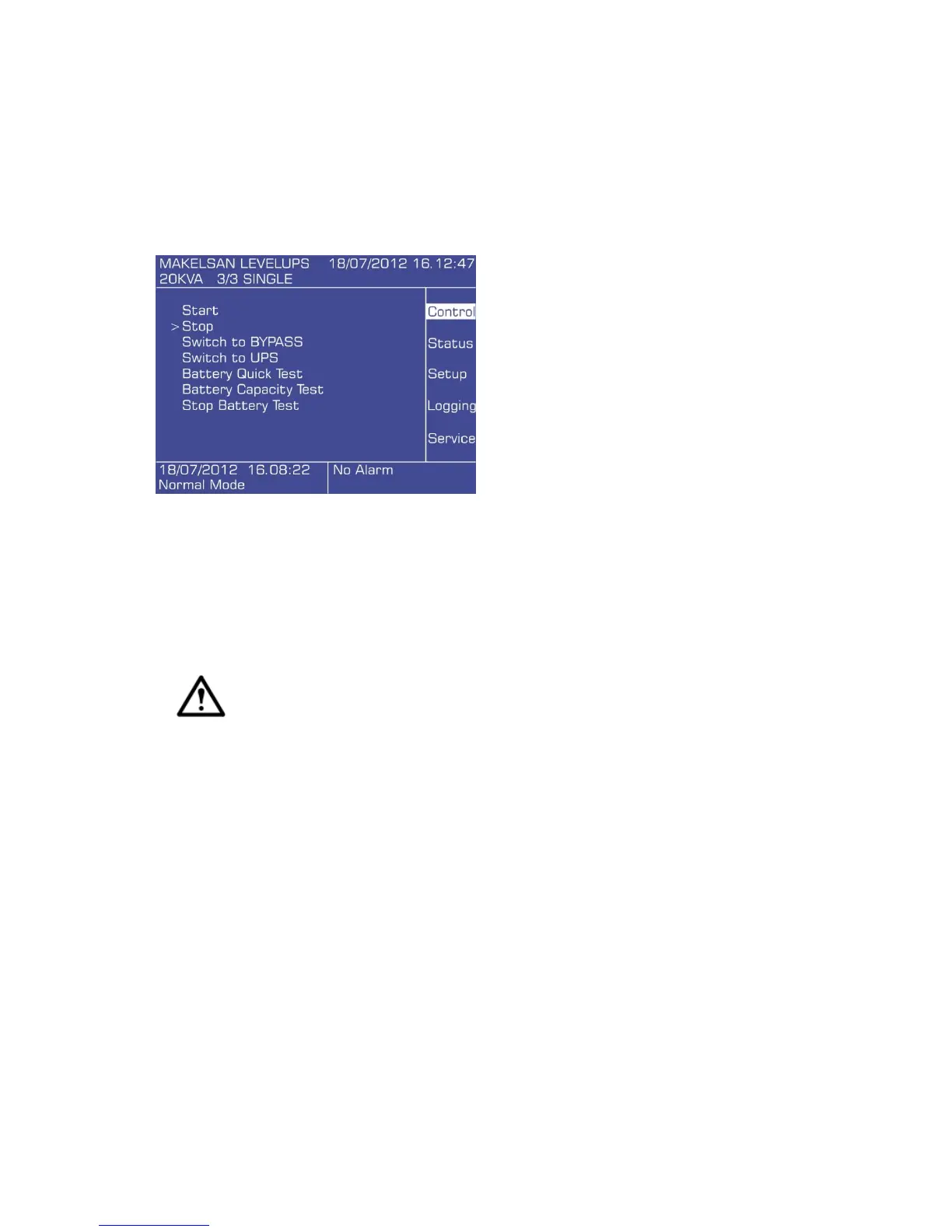 3. Check if the the UPS has switched to bypass mode, via mimic diagram LEDs and LCD panel.