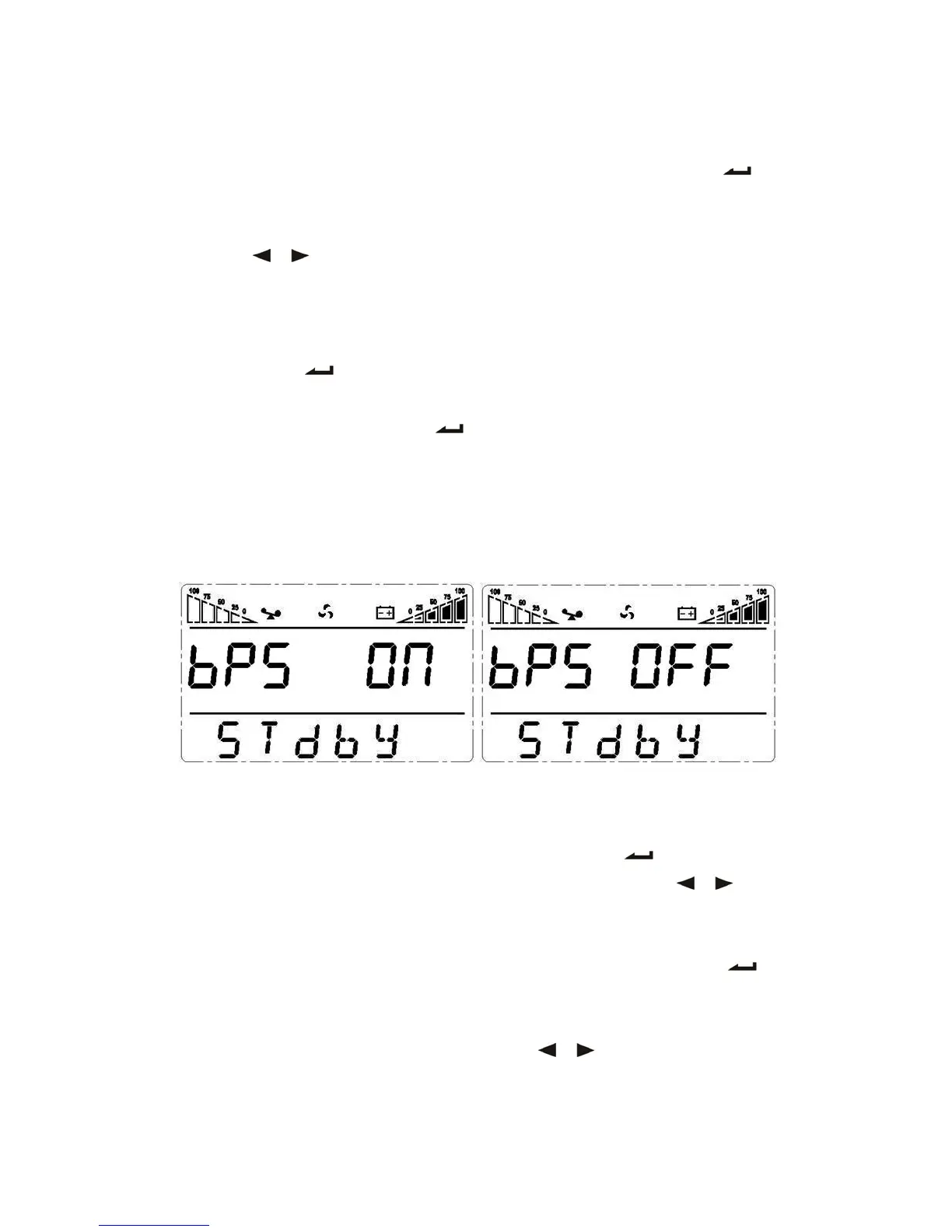 time, the letters “BPS” will not flash any more. The “ON” letter will flash. Press and hold the