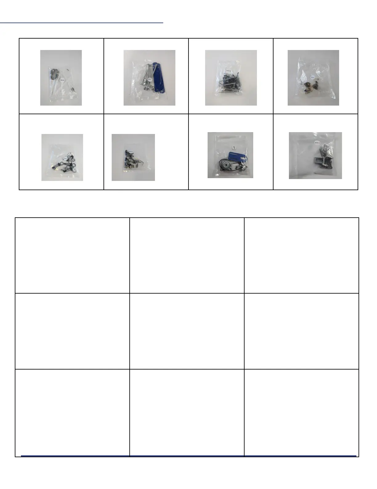 Drew’s Note: Listed here are the contents of the bags. In the assembly portion, they will be refered to by their letter and number!