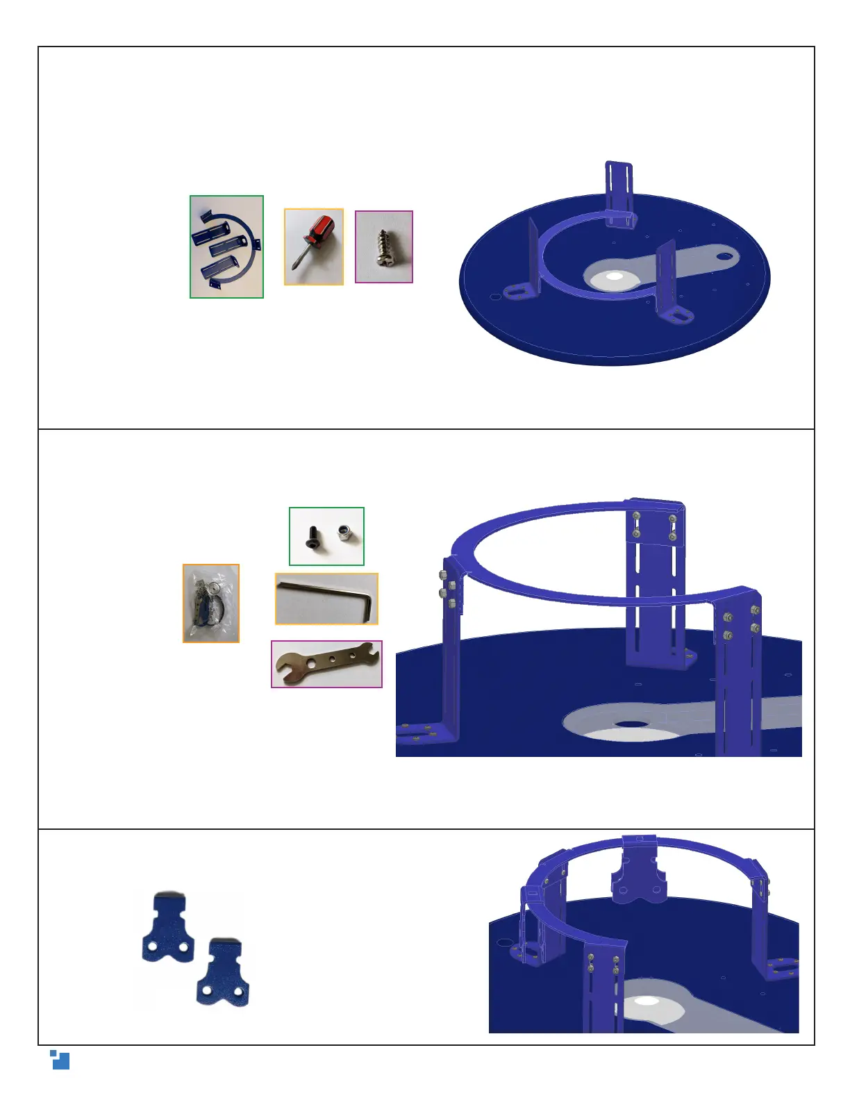 2. Attach the three L-brackets to the rectangular brackets on the ring carriage