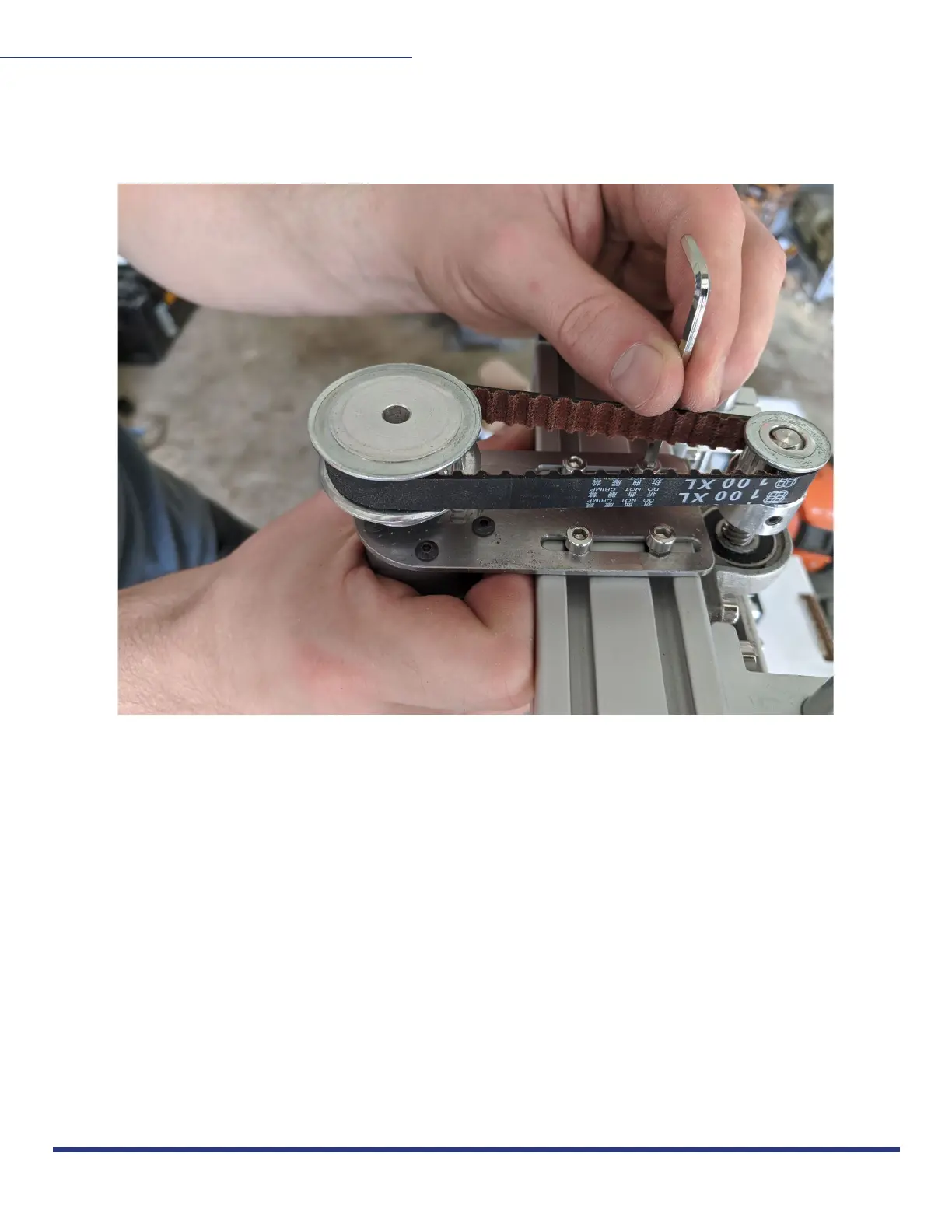 Tighten by gripping Z Axis Motor and pulling toward yourself until the belt is very tight. Use