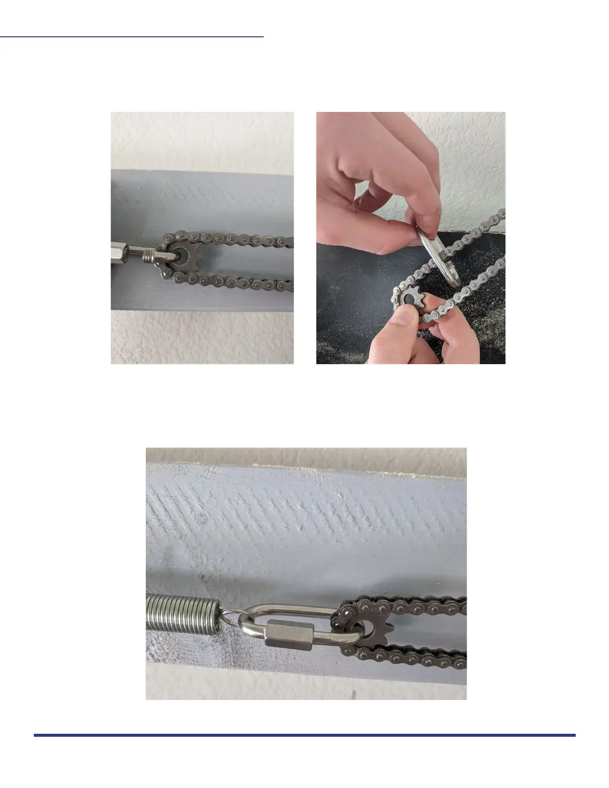 Measure 31” (78cm) of one chain from nail toward center of Top Beam, place Motor Sprocket