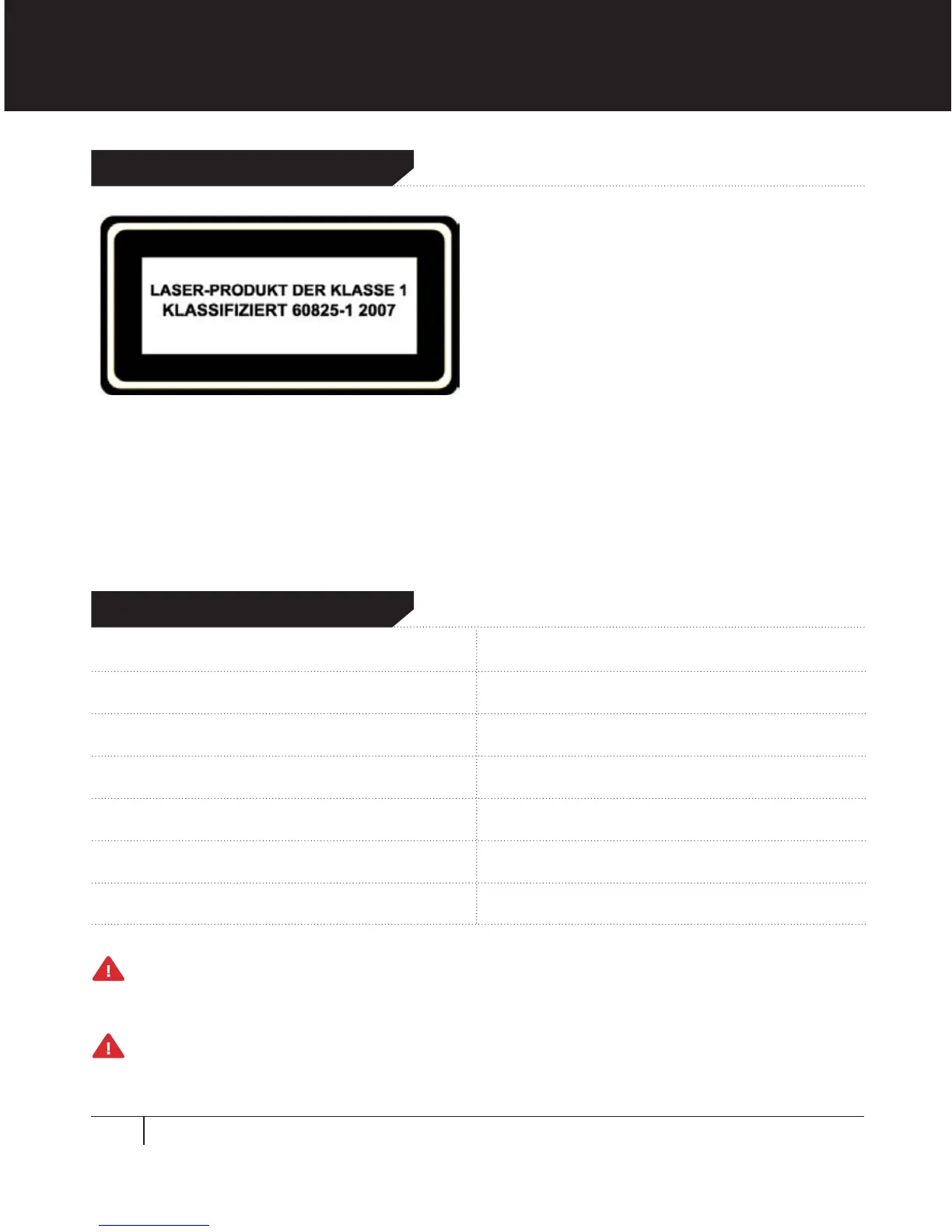 Prozess. Laser der Klasse 1 sind unter Bedingungen des normalen Gebrauchs sicher. Das