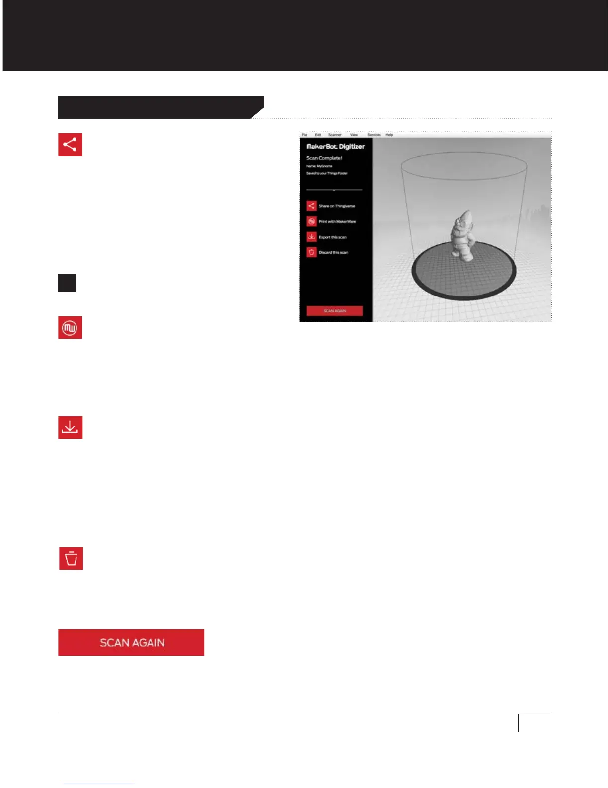 scan. Once you’ve accepted the delete confirmation prompt, MakerWare for Digitizer deletes