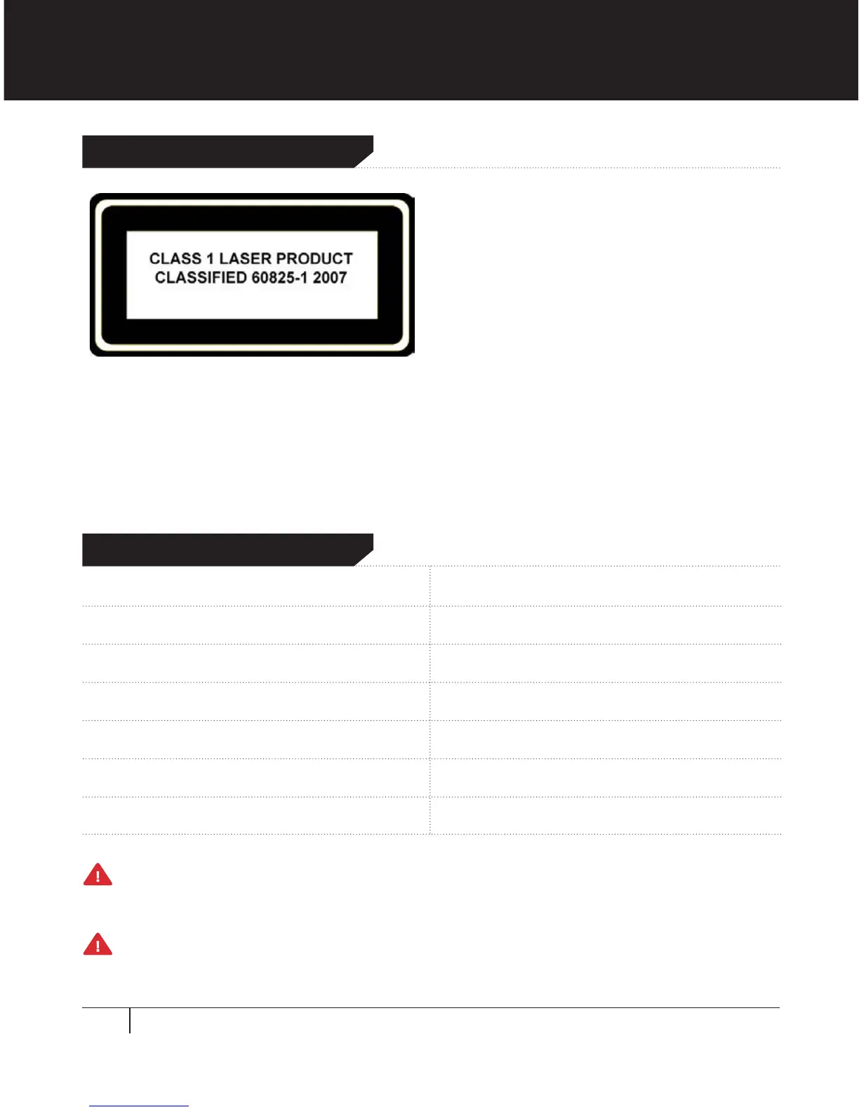 (J) 1040.10 and IEC 60825-1 as per Laser Notice 50. Class 1 lasers are safe under all conditions