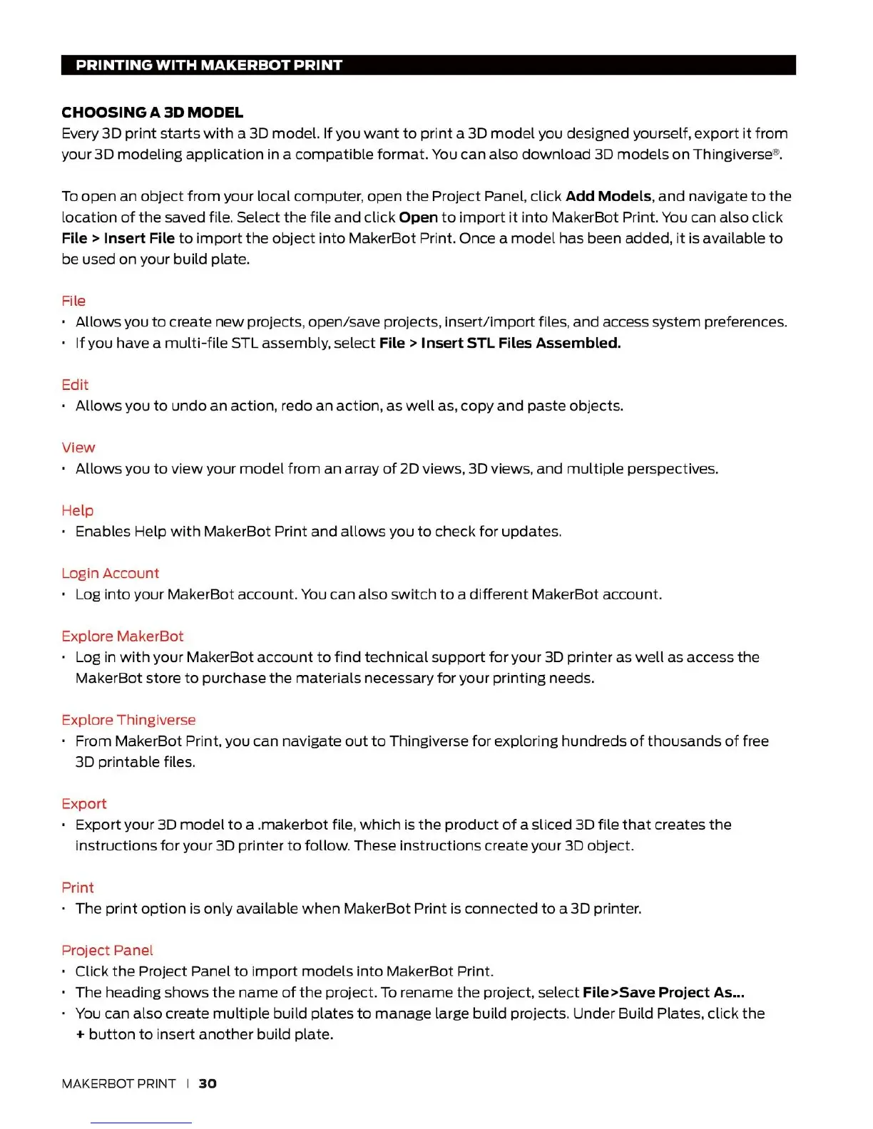 MakerBot Replicator+ - Printing with MakerBot Print; Choosing a 3 D Model