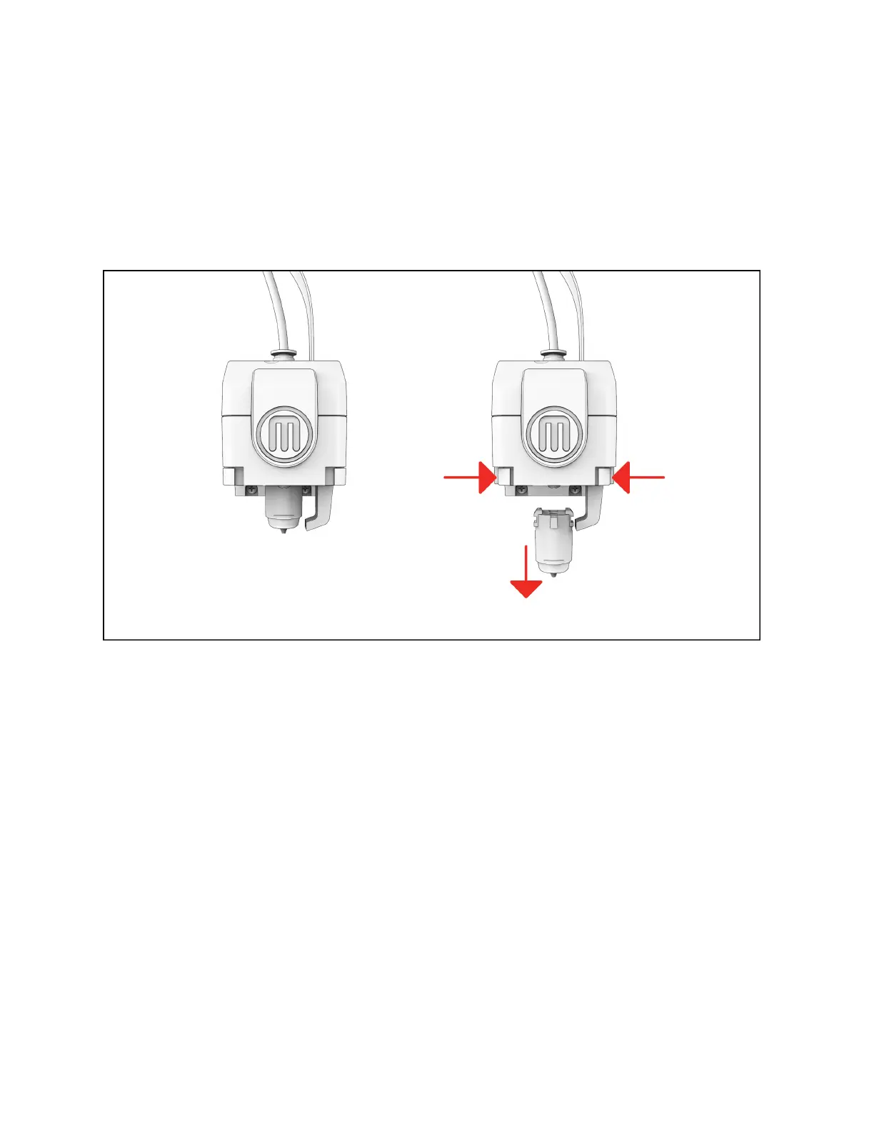 1. While pressing the le and right clips pull down on the extruder until it releases. Depending on your printer this may