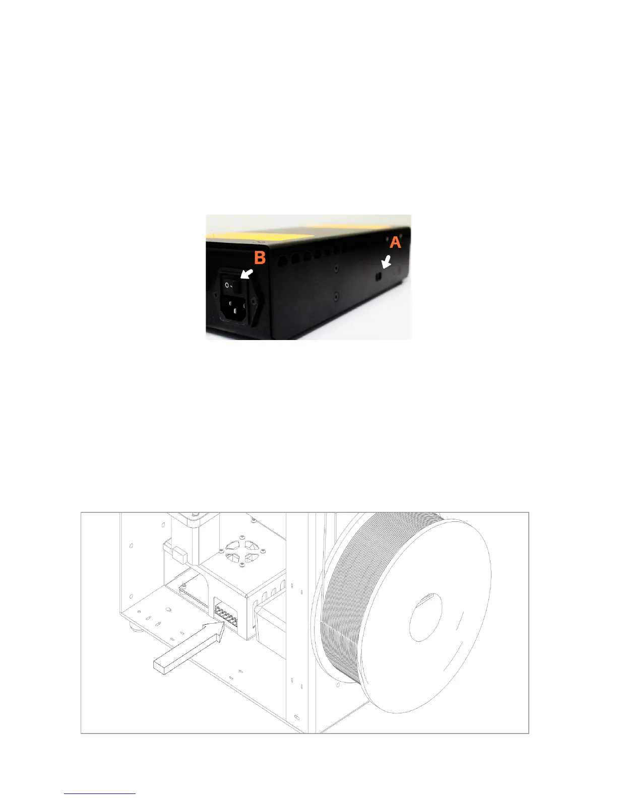 plug the power supply into a wall outlet and ip the switch (B) to the on