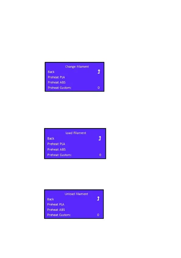 Load Filament : Preheat PLA –Preheats the hotend to a