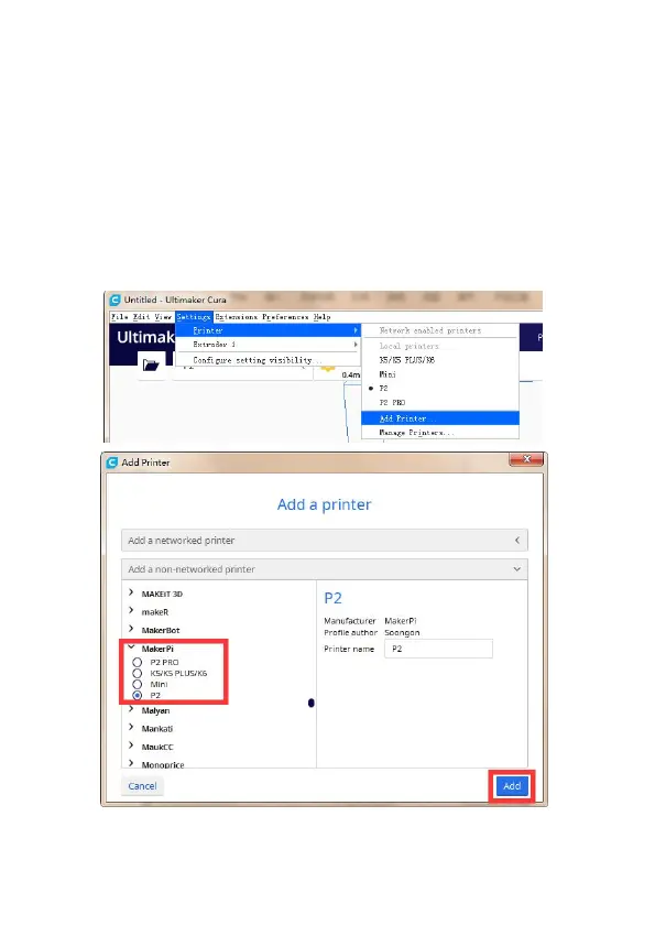 MakerPi P2 - Attachment: Slicing Software Setup; Add Printer to Slicing Software