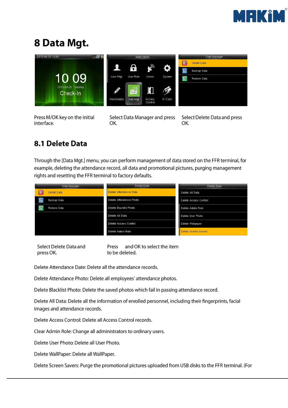 Makim D20 - 8 Data Mgt.; 8.1 Delete Data