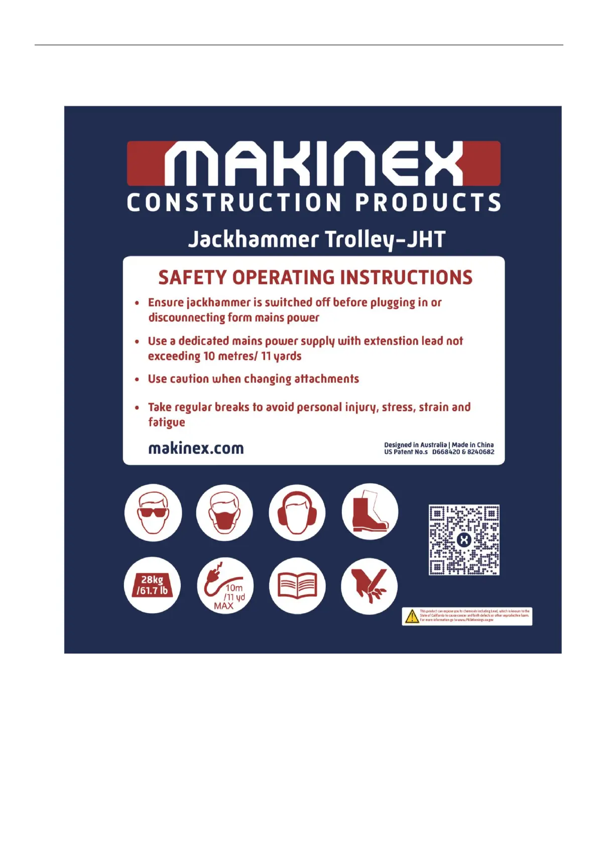 There is a safety and information panel provided on the front of the Jackhammer Trolley to
