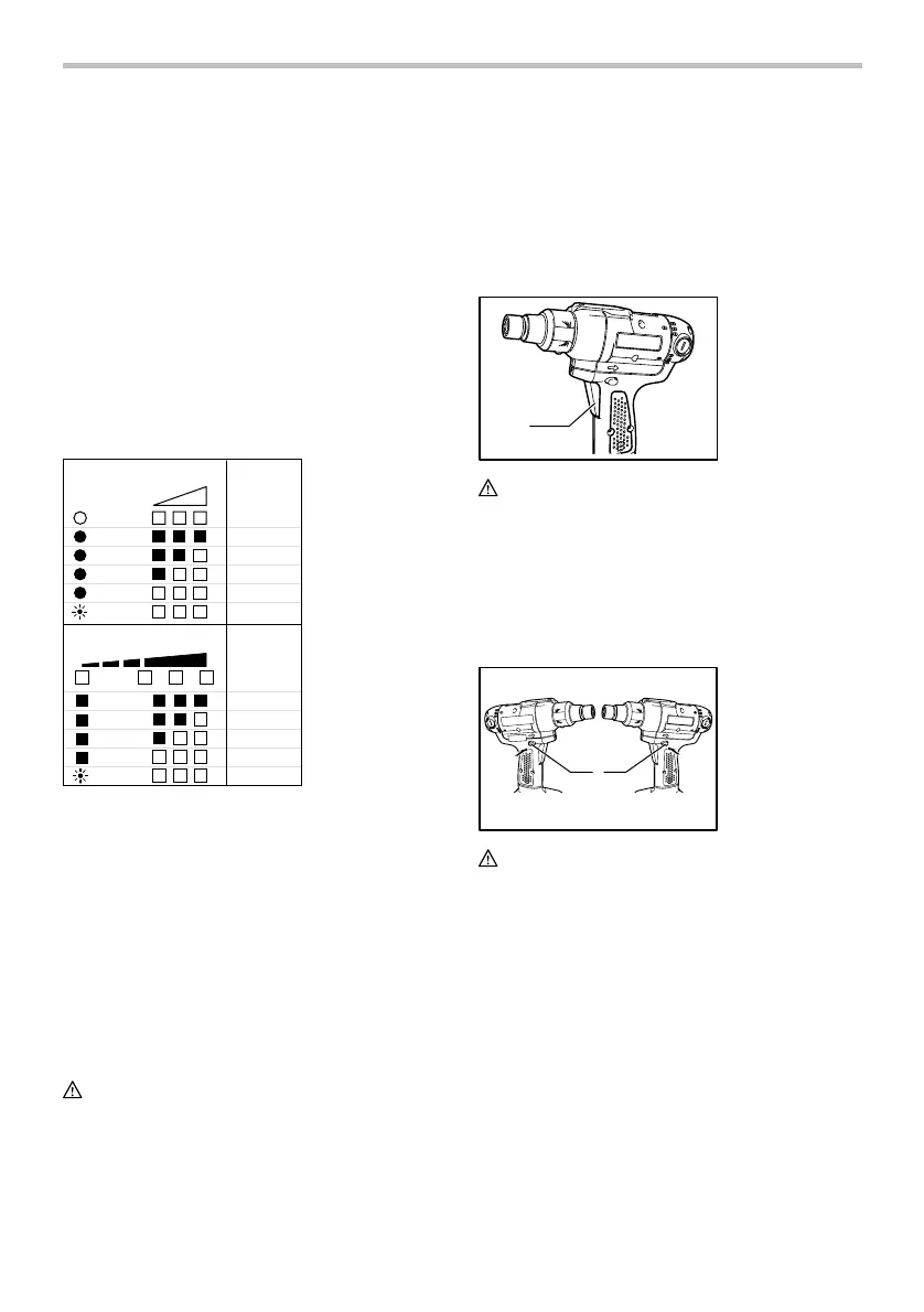 When the tool is switched on, the lamps will light after 2