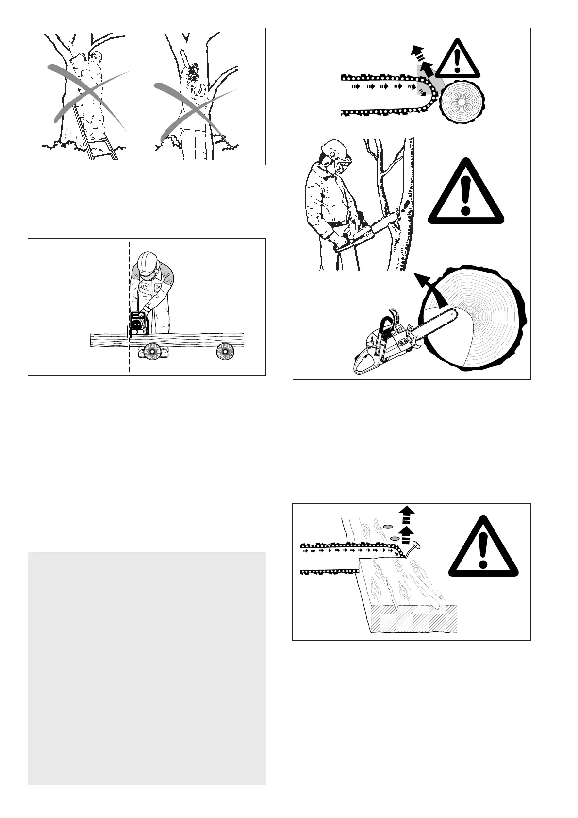 a rm foothold. Never work on a ladder, in a tree or on