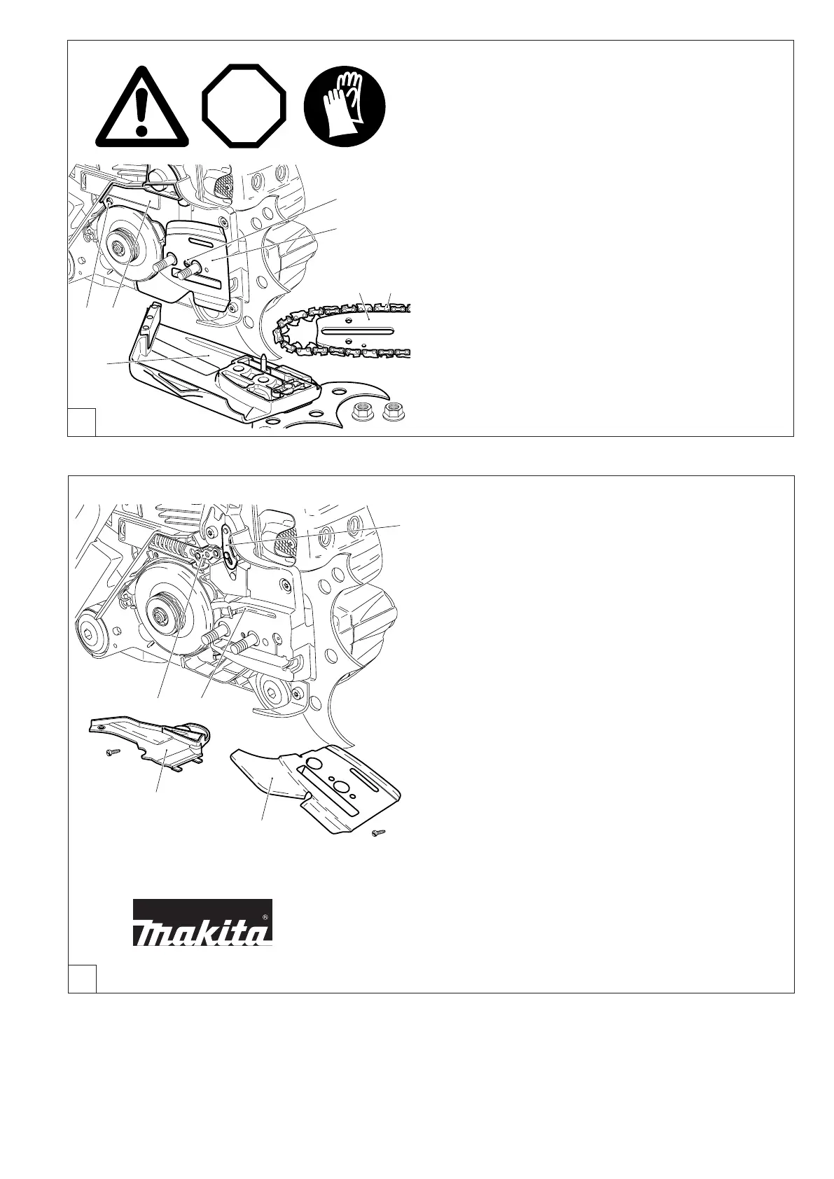chaîne de sciage, le moteur doit être impérativement arrêté