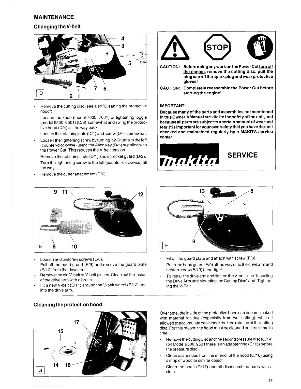 the Power Cut. This reduces the V-belt tension.