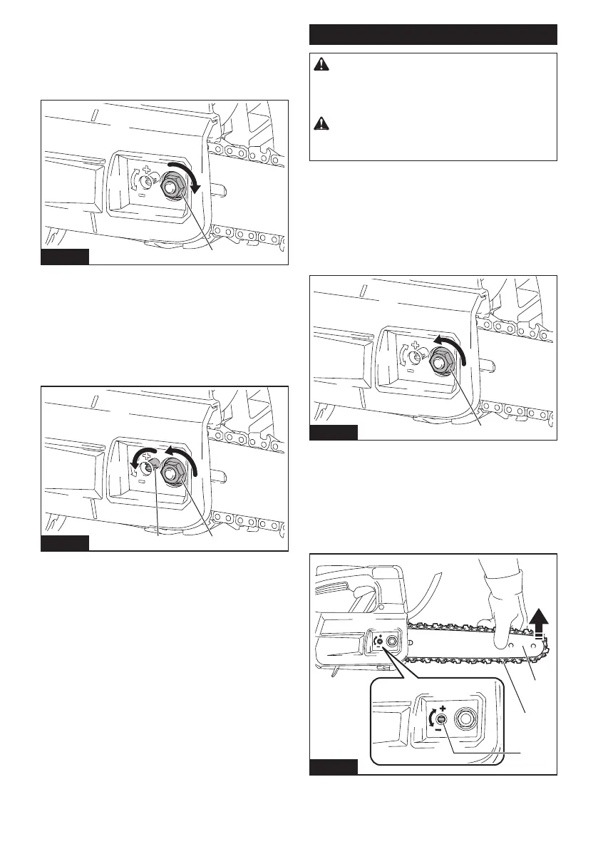 to loosen. Tighten the saw chain until the lower