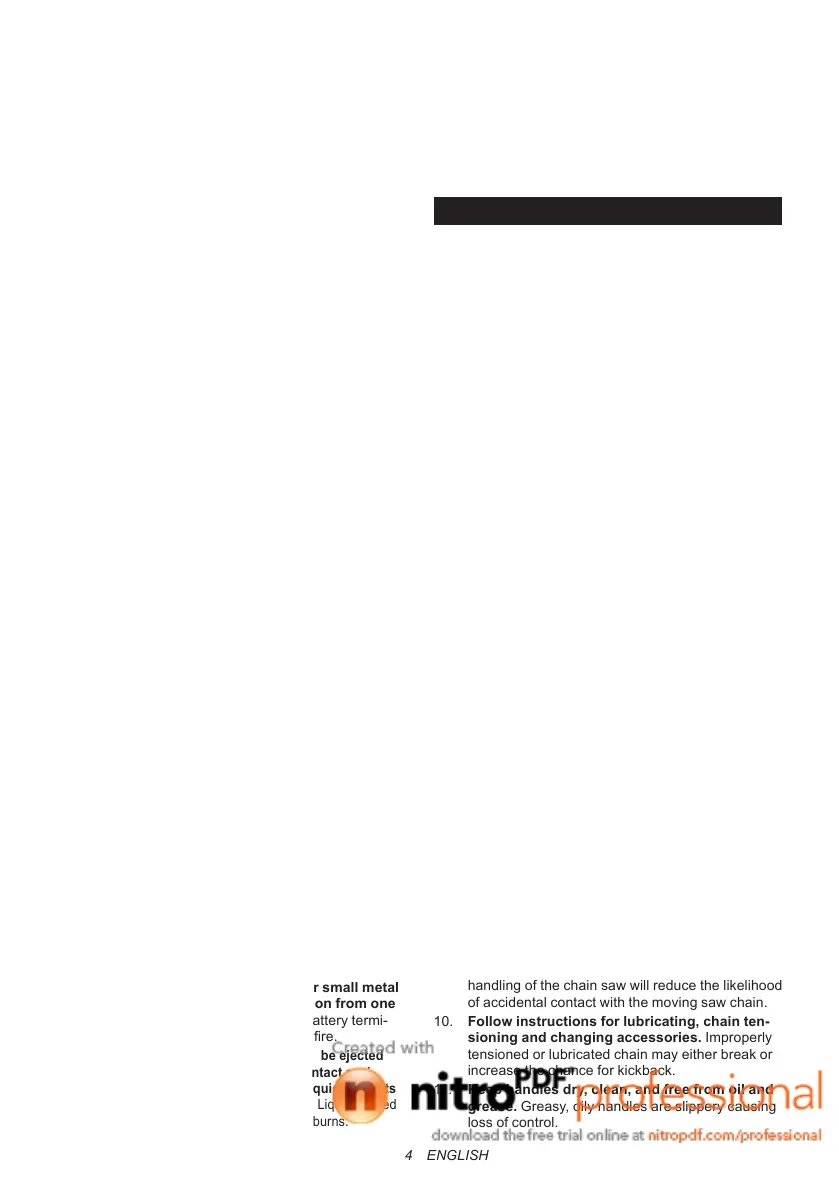 handling of the chain saw will reduce the likelihood
