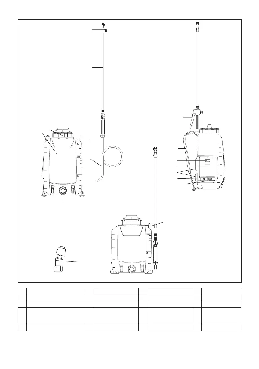 1 Vertikale Doppelkopfdüse 2 3 Tankdeckel 4 Tank (10 L/15 L)