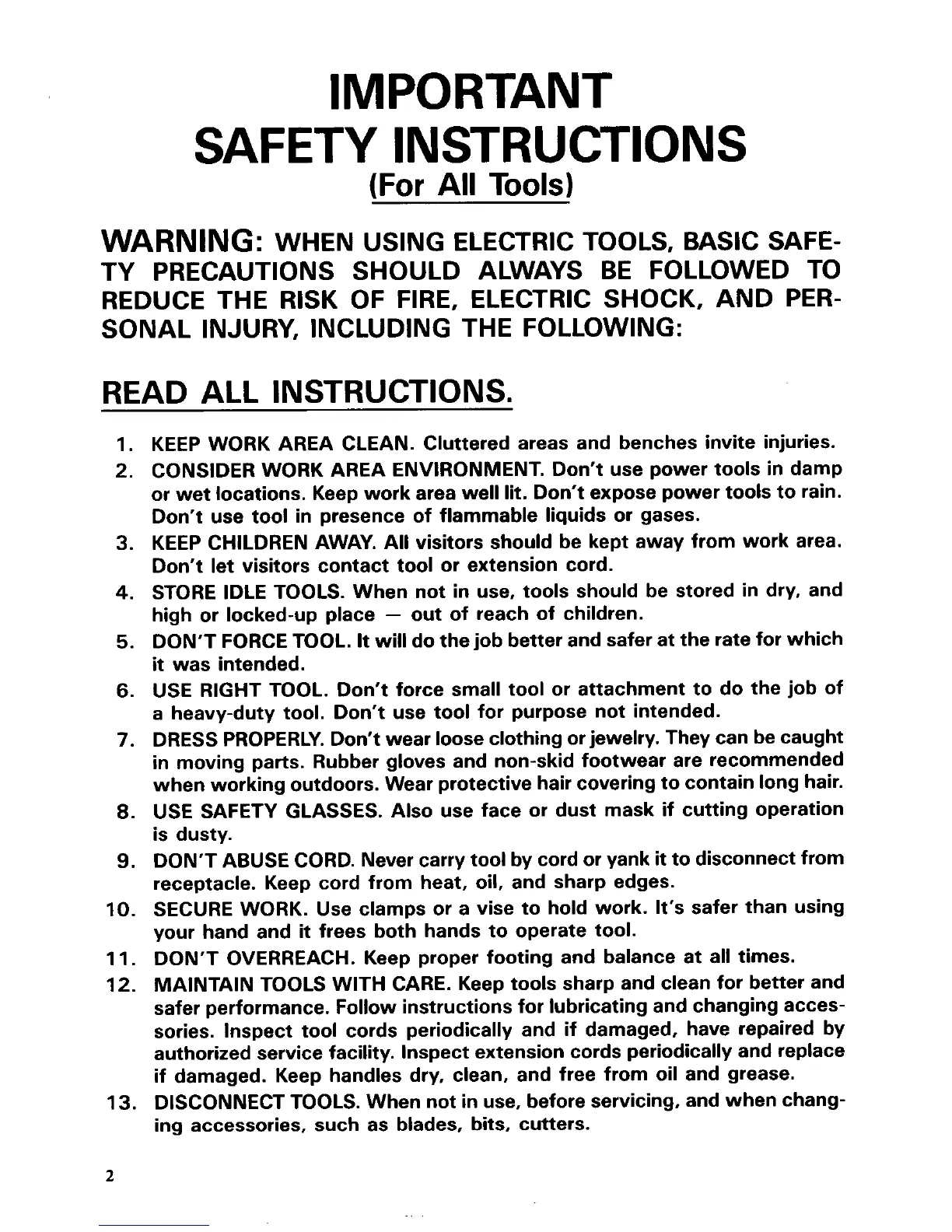 WHEN USING ELECTRIC TOOLS, BASIC SAFE-
