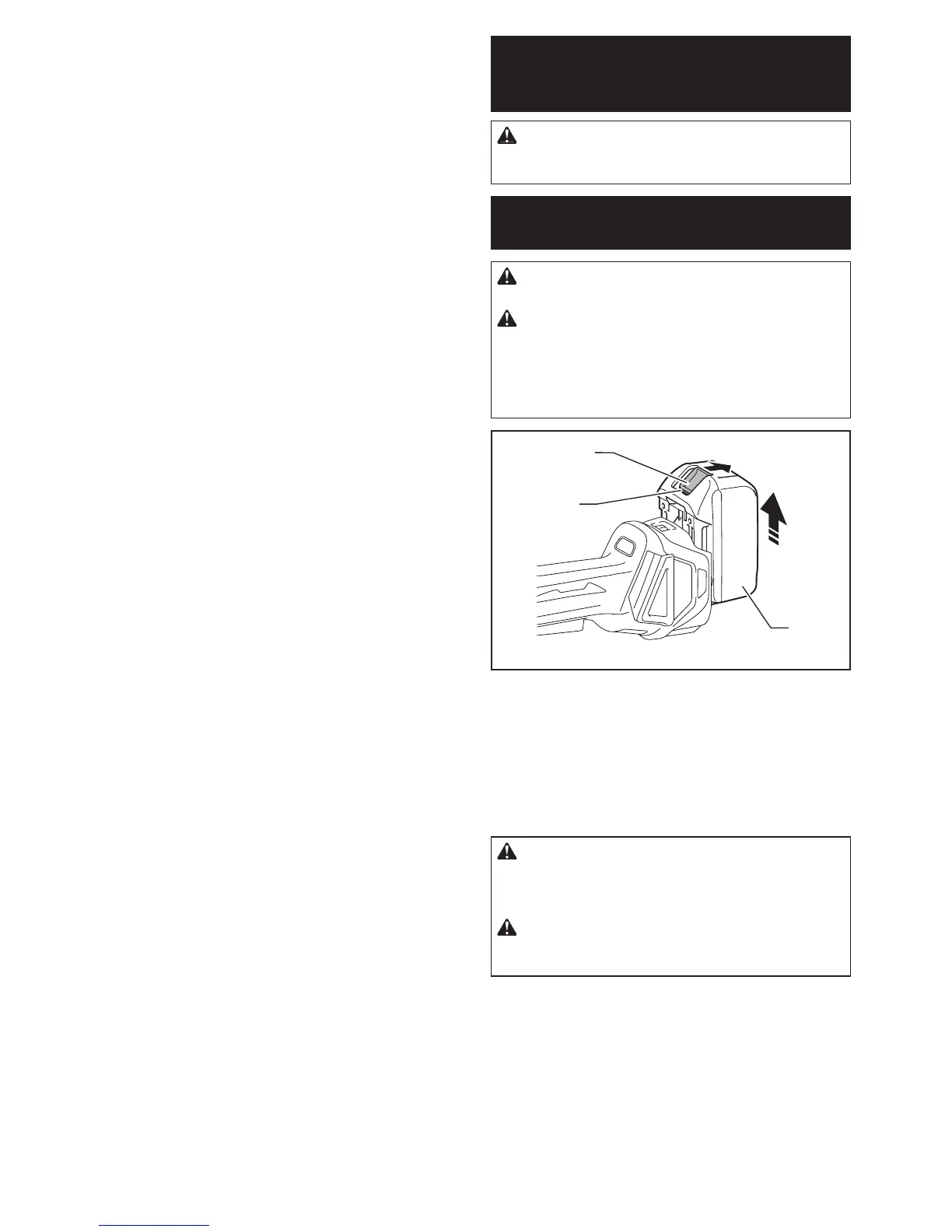 cartridge. Failure to hold the tool and the battery