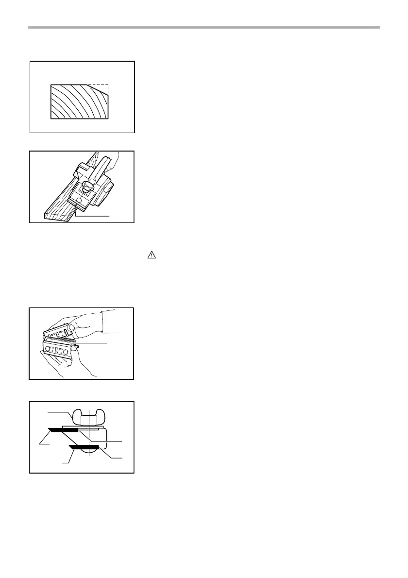 To make a chamfering cut as shown in the figure, align the “V” groove in the