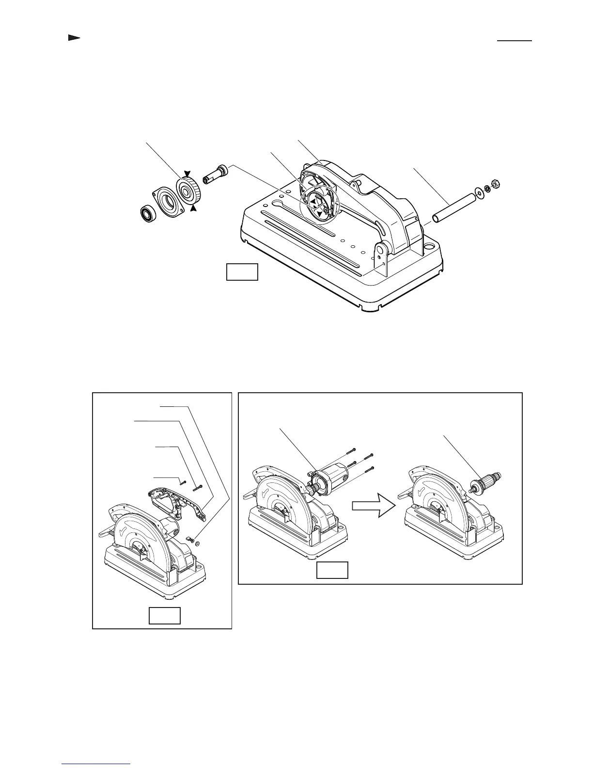 ( 1 ) Remove carbon brushes. Remove handle L by unscrewing 3 pcs. of pan head screws M4x25 and