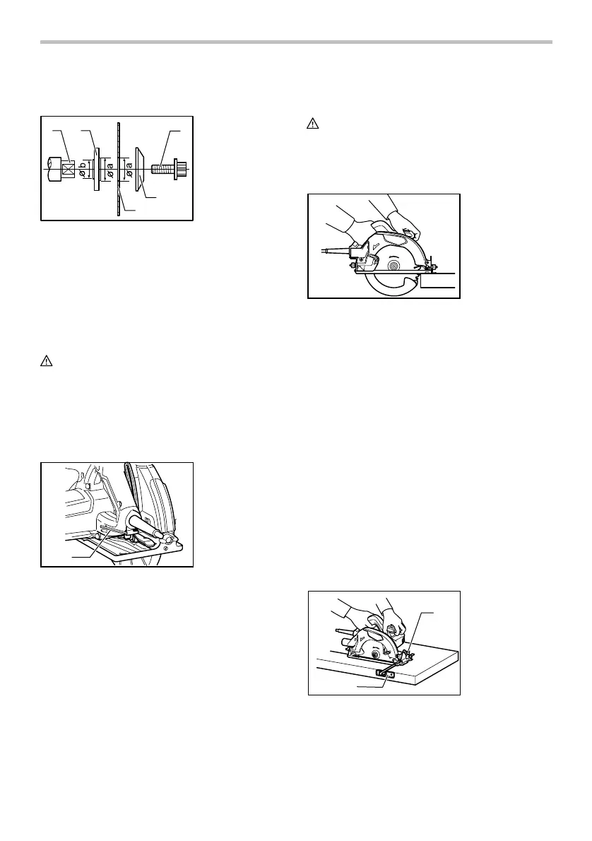 saw blade hole "a" perfectly. Mounting the blade