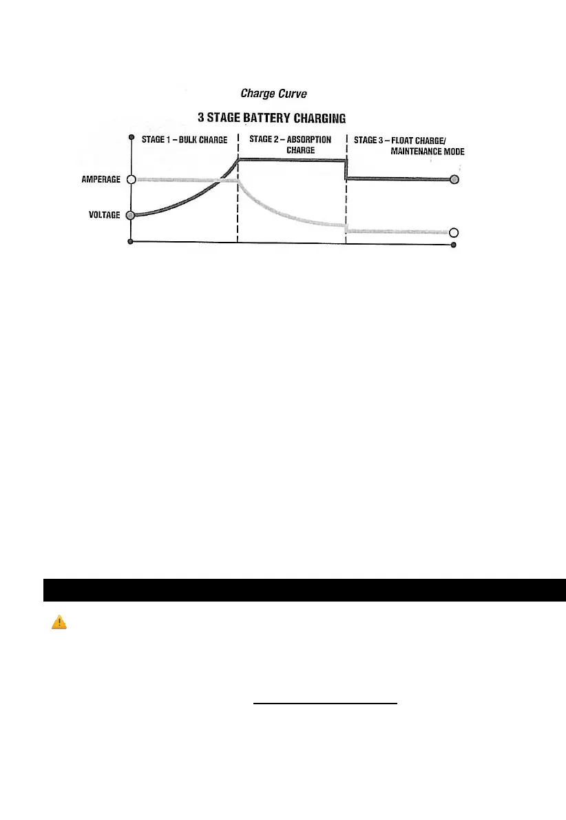 STAGE 3 – Float Charge: Voltage is automatically maintained and reduced