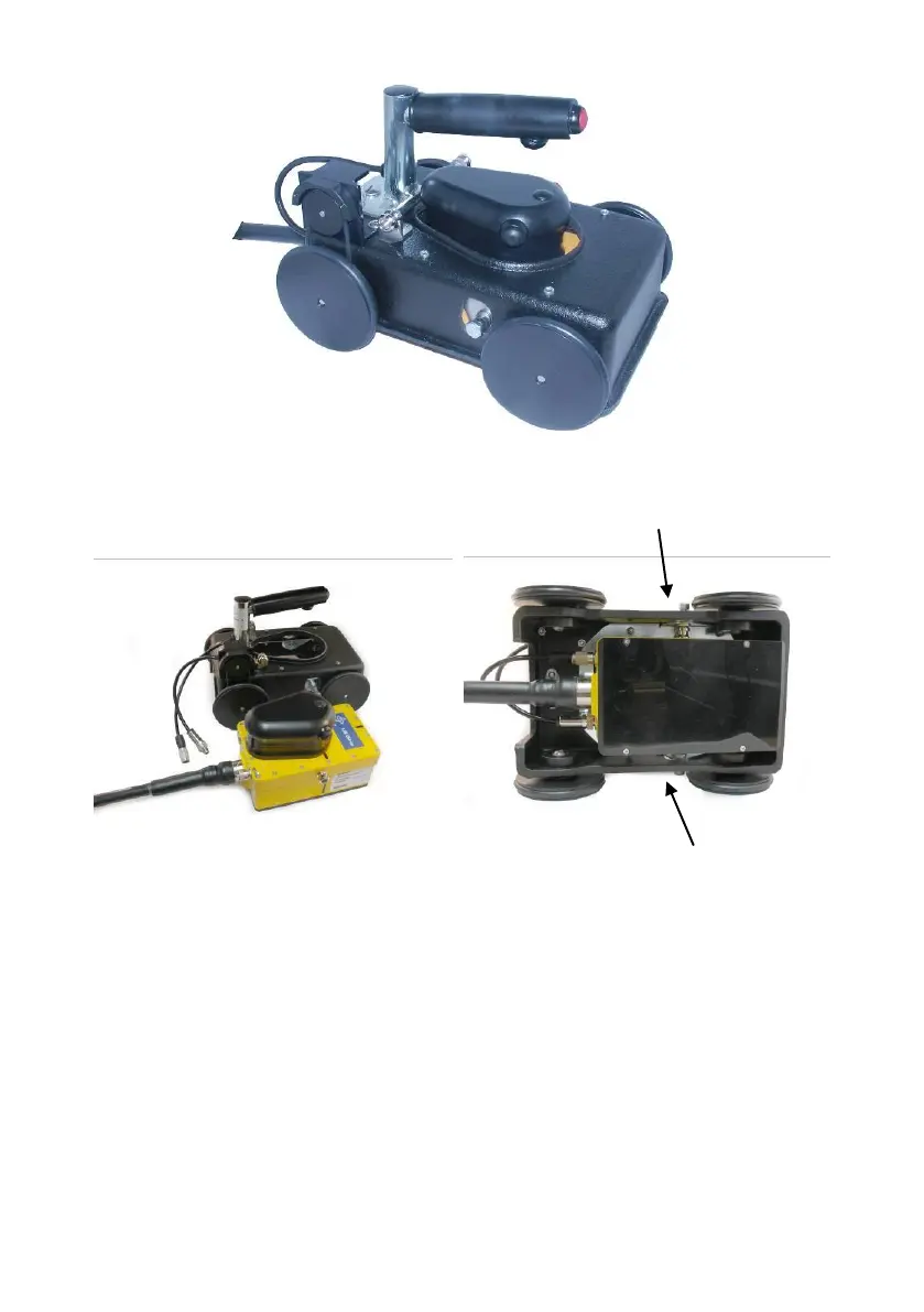 cart. Note the connections for the encoder wheel and the antenna buttons.