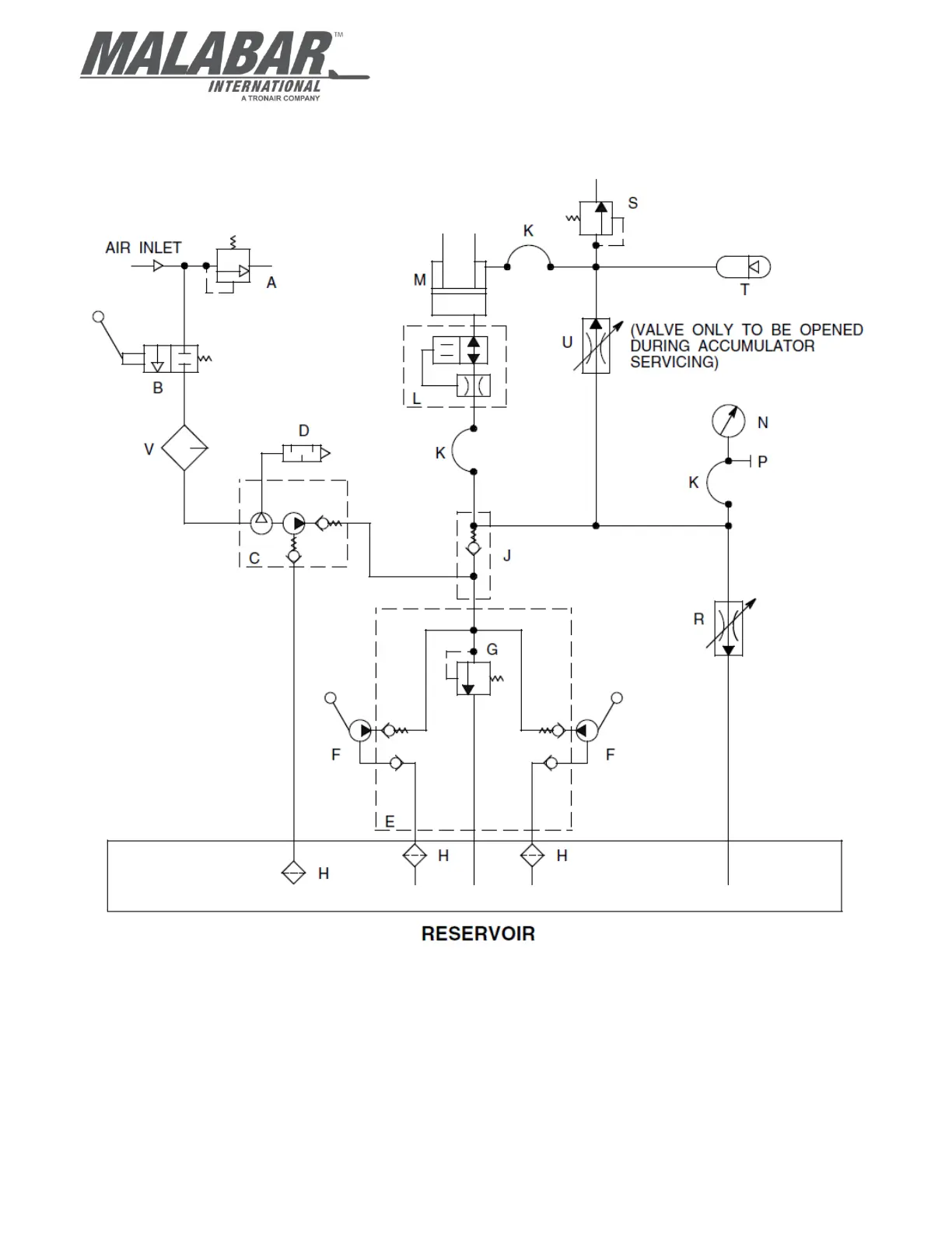 G - SAFETY POP-OFF VALVE T - ACCUMULATOR