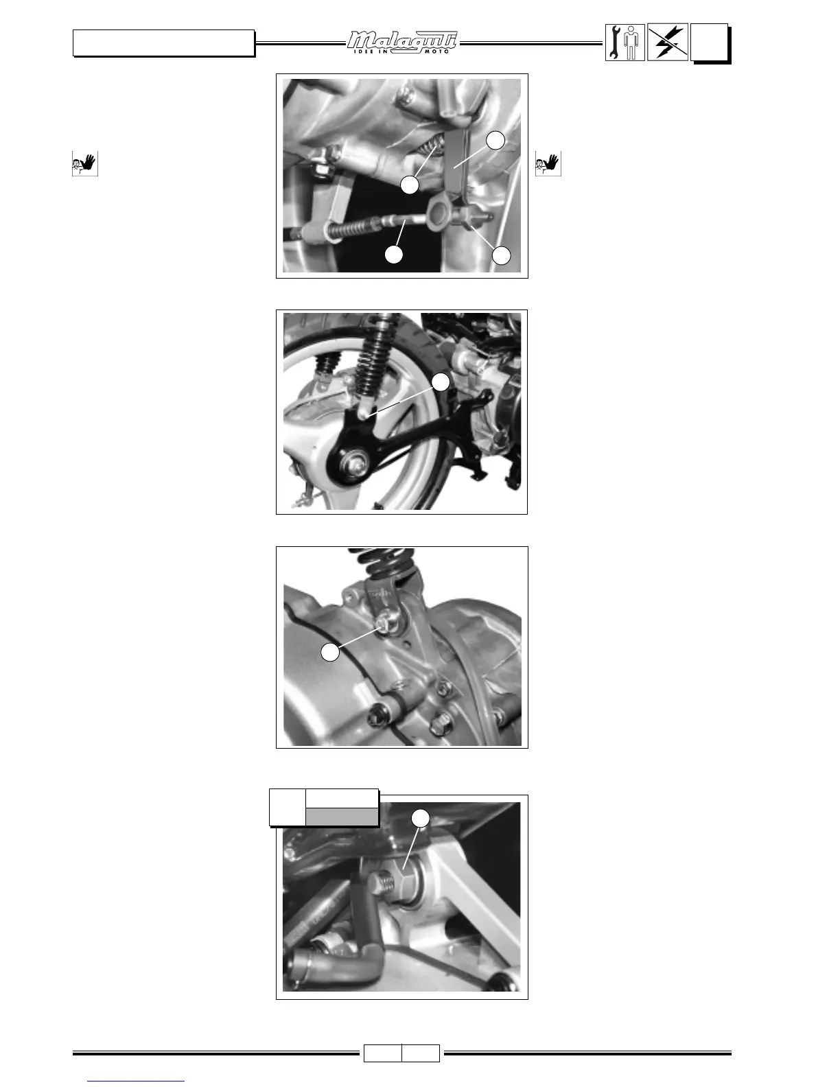 •Rimuovere la molla (4) di ritorno