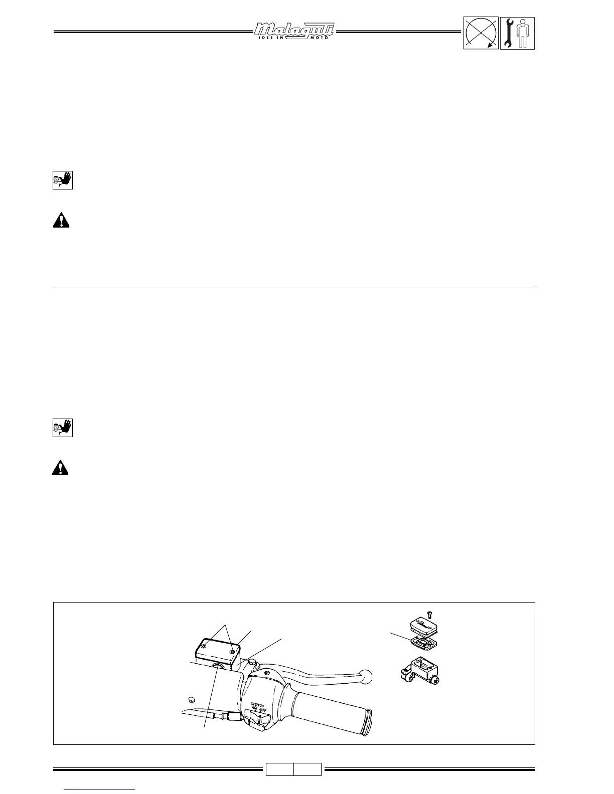 • Nel caso l’olio dei freni risulti alterato da scorie, detriti o presenza di acqua, è indispensabile sostituirlo integralmente.