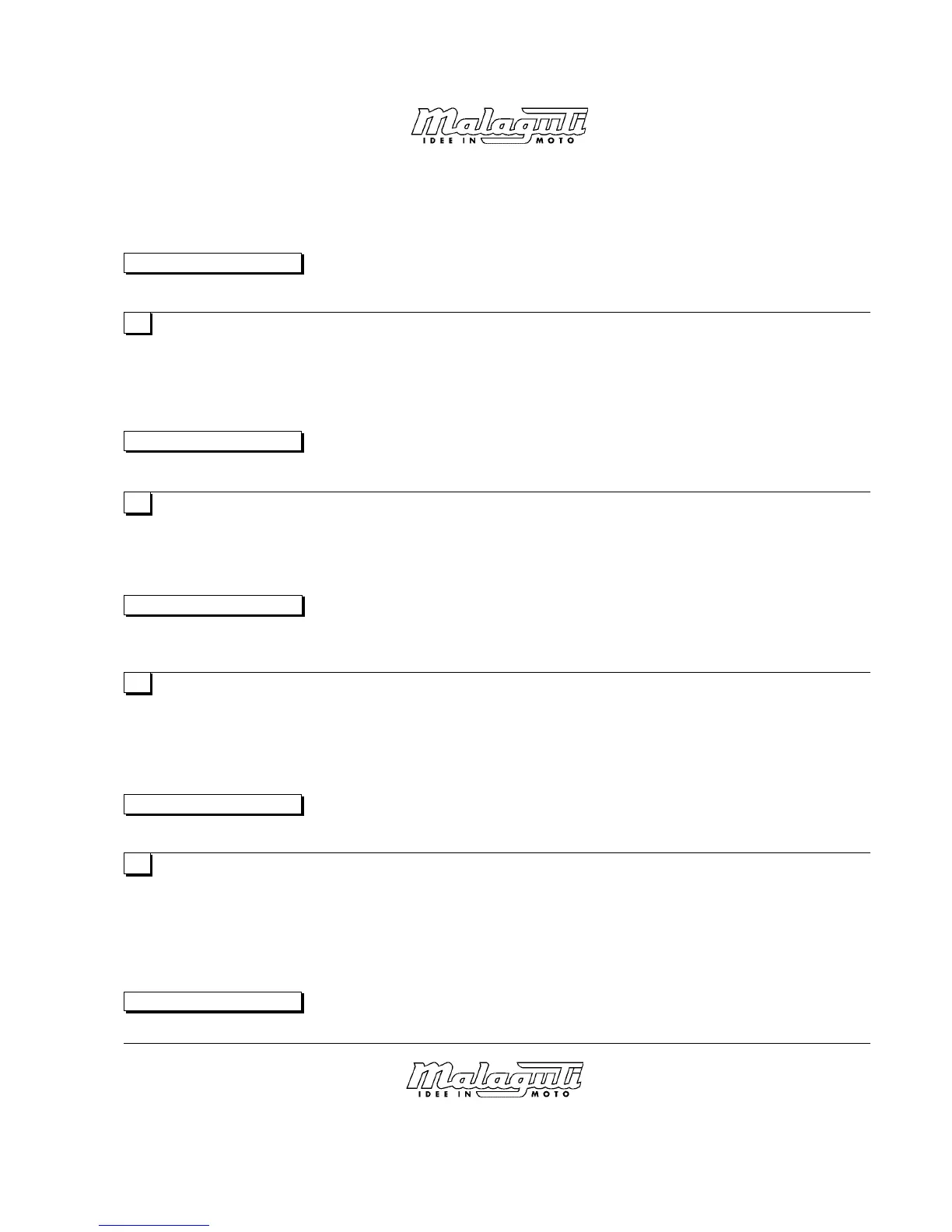 •La société Malaguti se réserve le droit d’apporter des modifications à ses motocycles, de quelque nature que ce