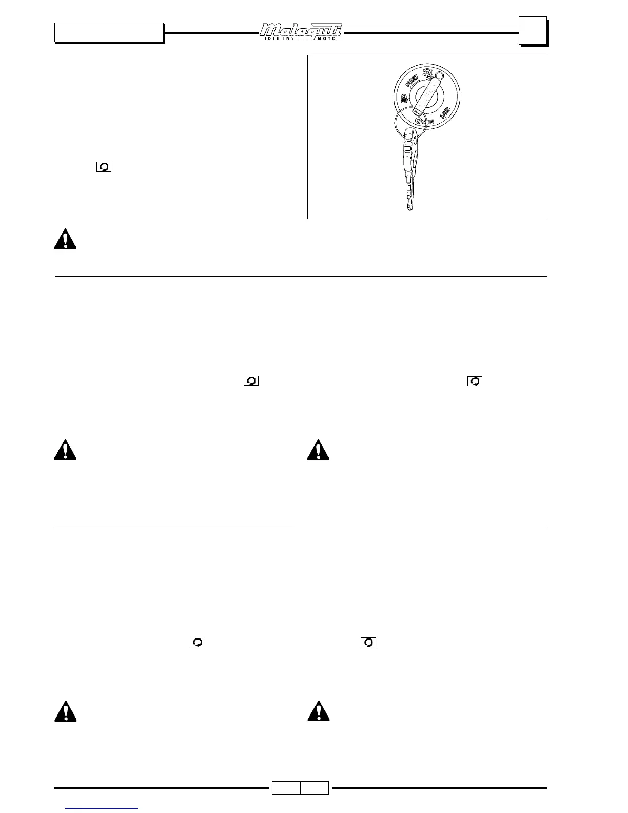 azionare l’avviamento per più di 10 secondi per ogni tentativo, per non esaurire l’energia della batteria.