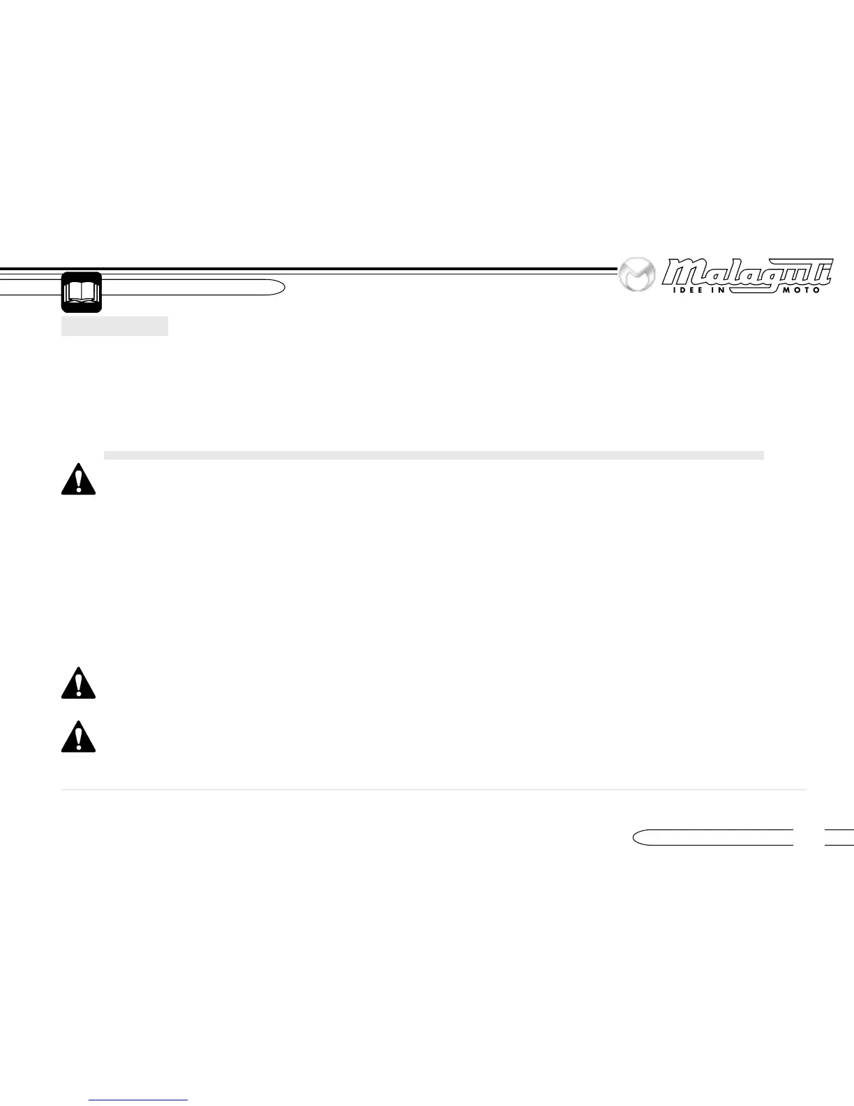 MALAGUTI può alterare le caratteristiche di sicurezza originali del veicolo e comportare il rifiuto, da parte del Conces-