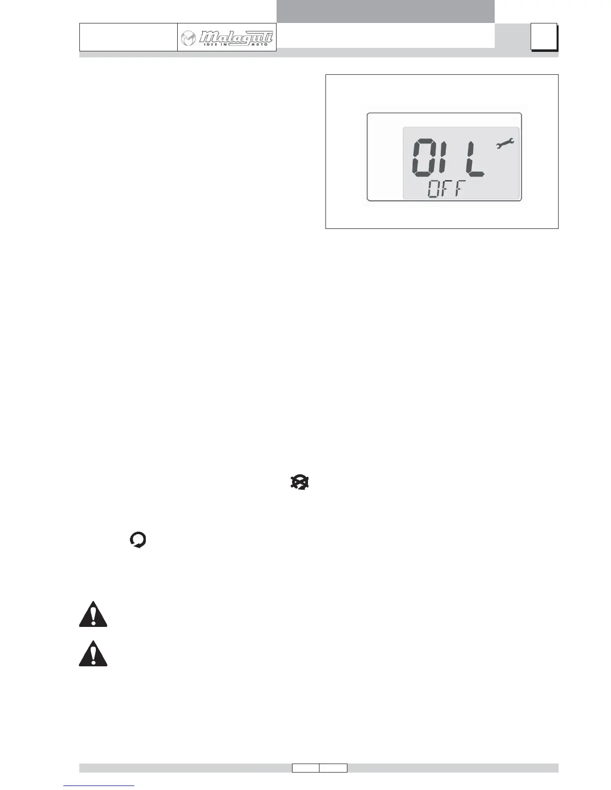 result in a confirmation message, OIL OFF, which lasts