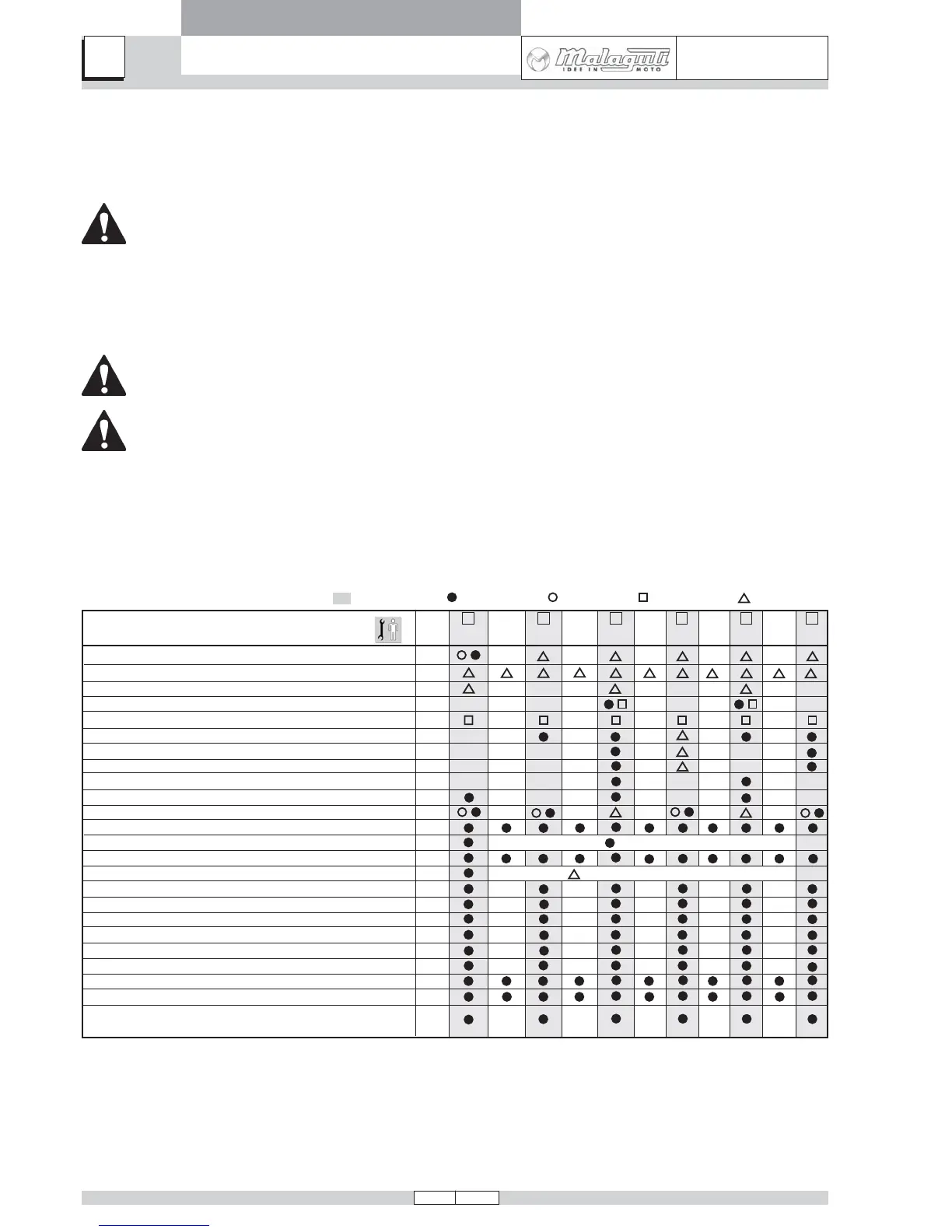 THE FIRST SERVICE must be carried out at 1000 km: for subsequent services see the MAINTENANCE TABLE.