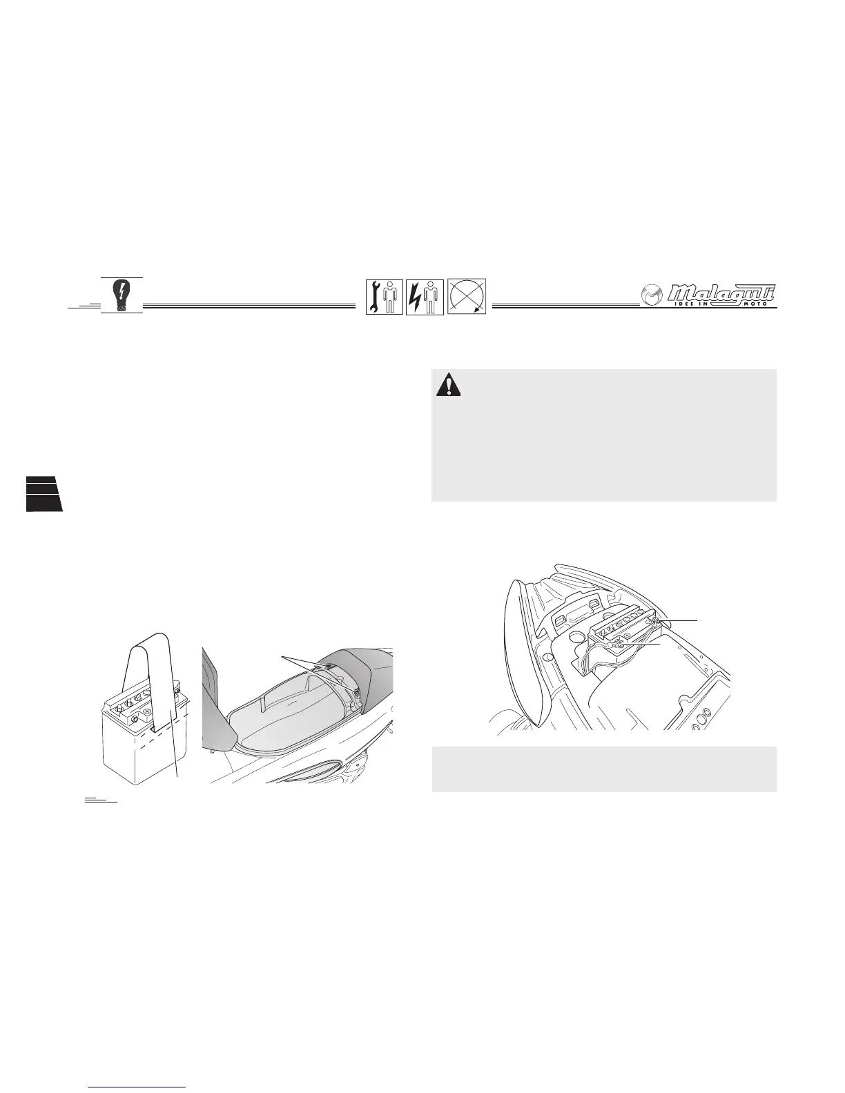 • Die 15A-Sicherung, die sich unter der linken Klappe des Beinschutzes befin-