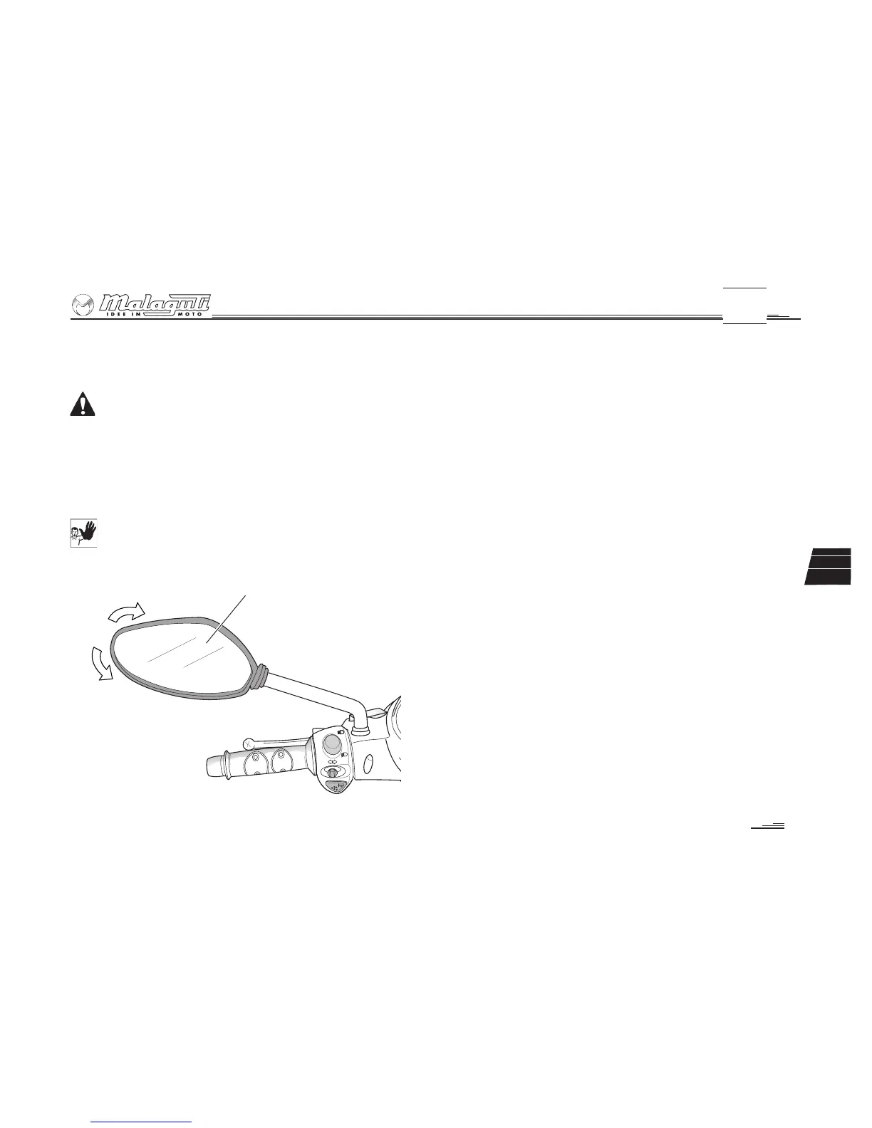 Adjust the mirrors seated in driving position. Turn the mirror until you