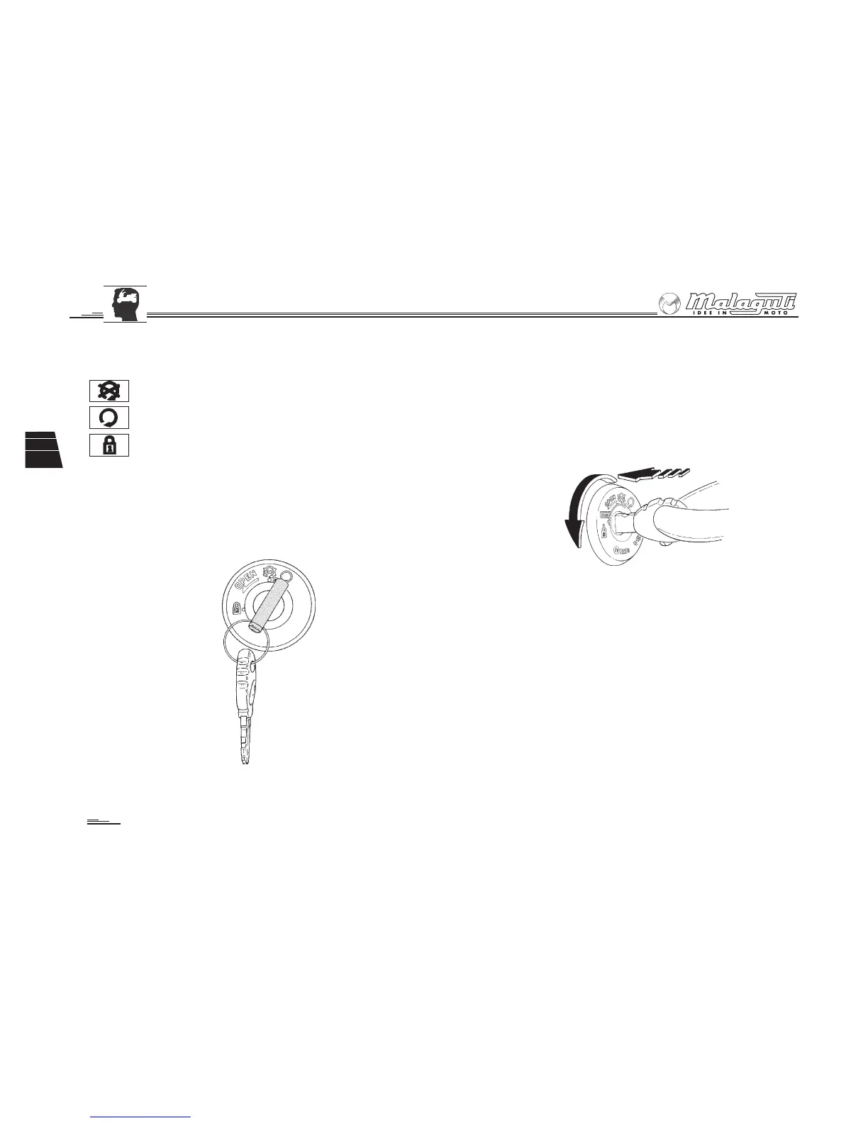 Col manubrio sterzato a sinistra, inserire a fondo la chiave e