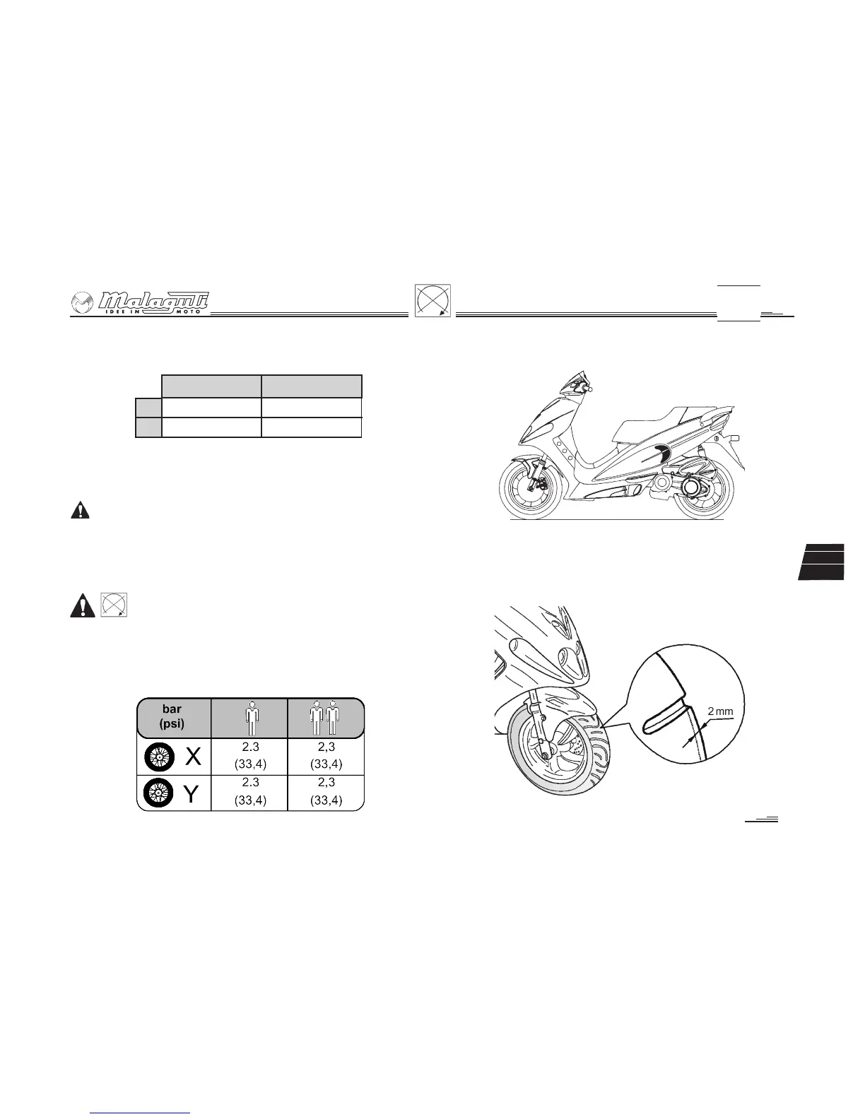 Failure to observe the tyre pressure or load limit instructions can adversely