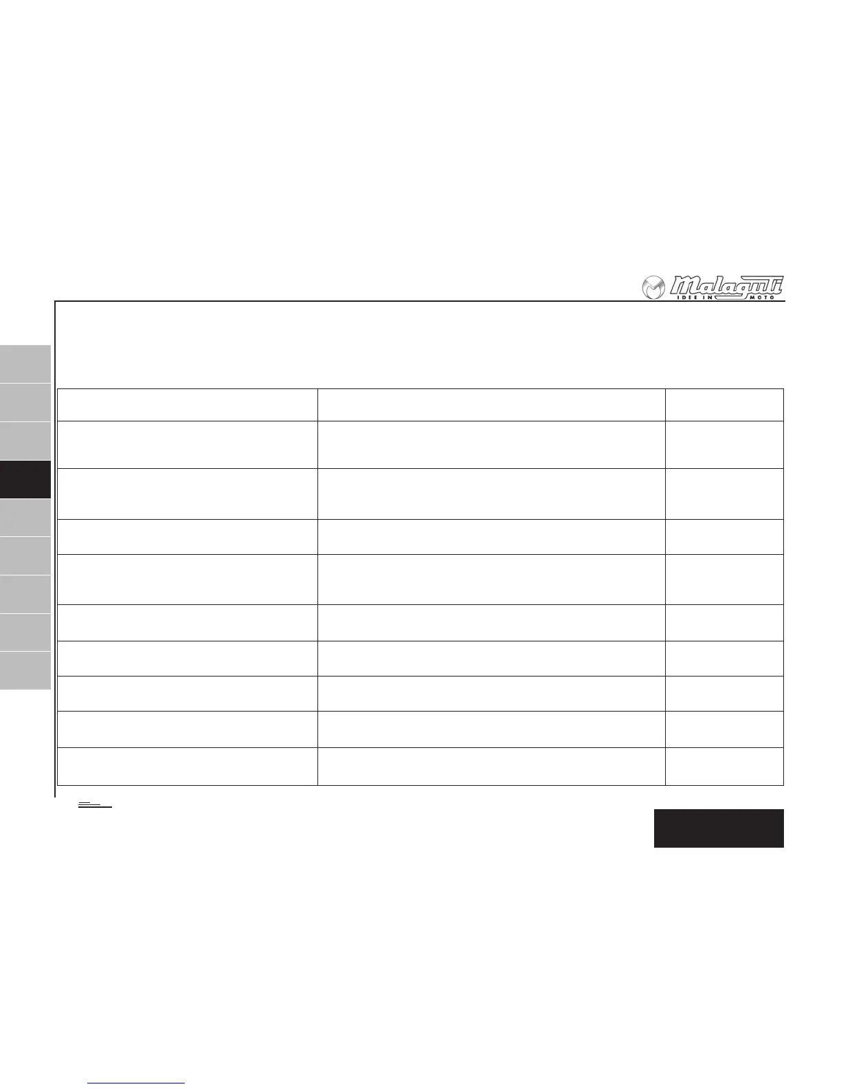 di fluido o di pressione dei pneumatici può avere serie conseguenze. E’ quindi molto importante che, oltre ad eseguire una completa