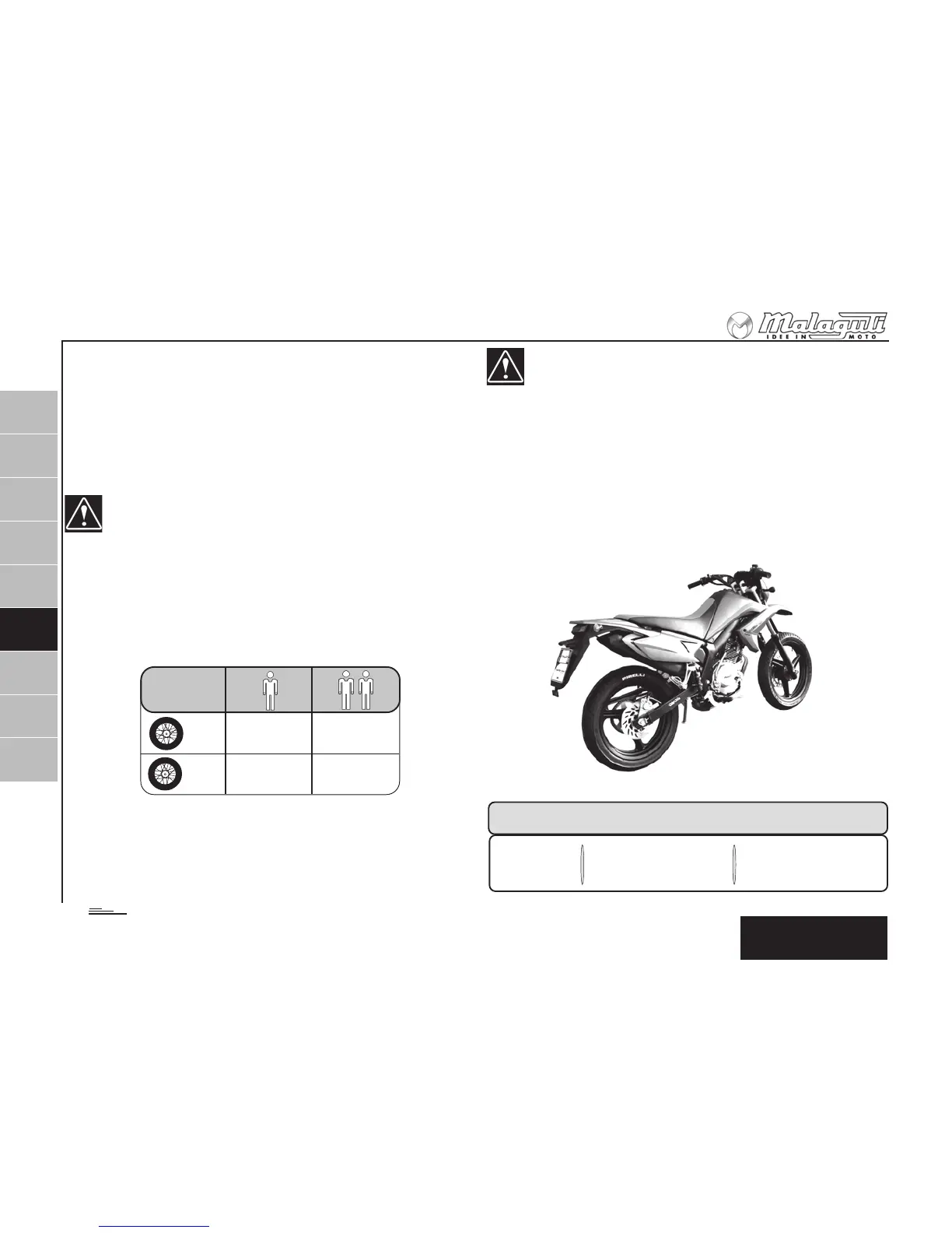• Controllare e regolare sempre la pressione dei pneumatici