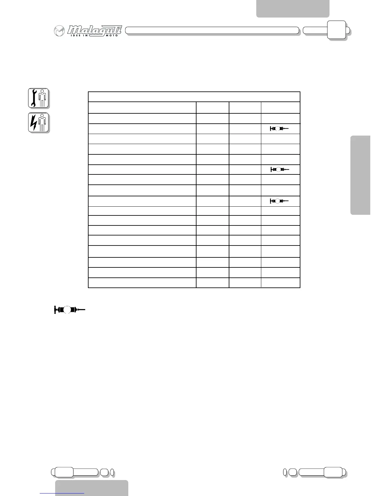 Malaguti XTM 50 - CHASSIS ASSEMBLY: TORQUE SETTINGS; TORQUE WRENCH SETTINGS TABLE