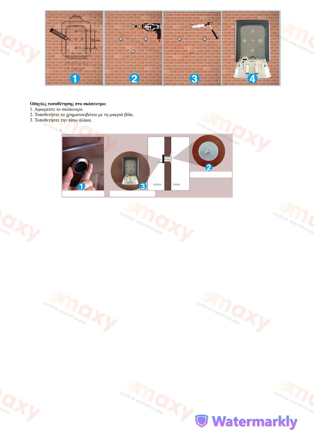 2. Τοποθετήστε το χρηματοκιβώτιο με τη μακριά βίδα.