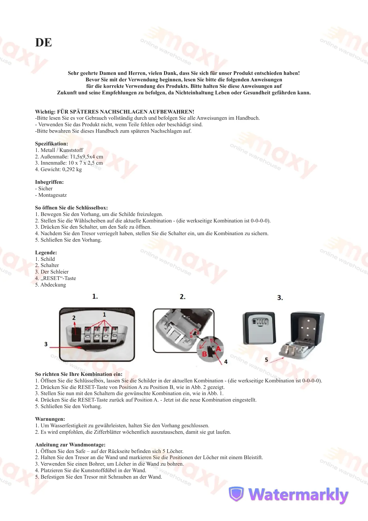 1. Öffnen Sie die Schlüsselbox, lassen Sie die Schilder in der aktuellen Kombination - (die werkseitige Kombination ist 0-0-0-0).