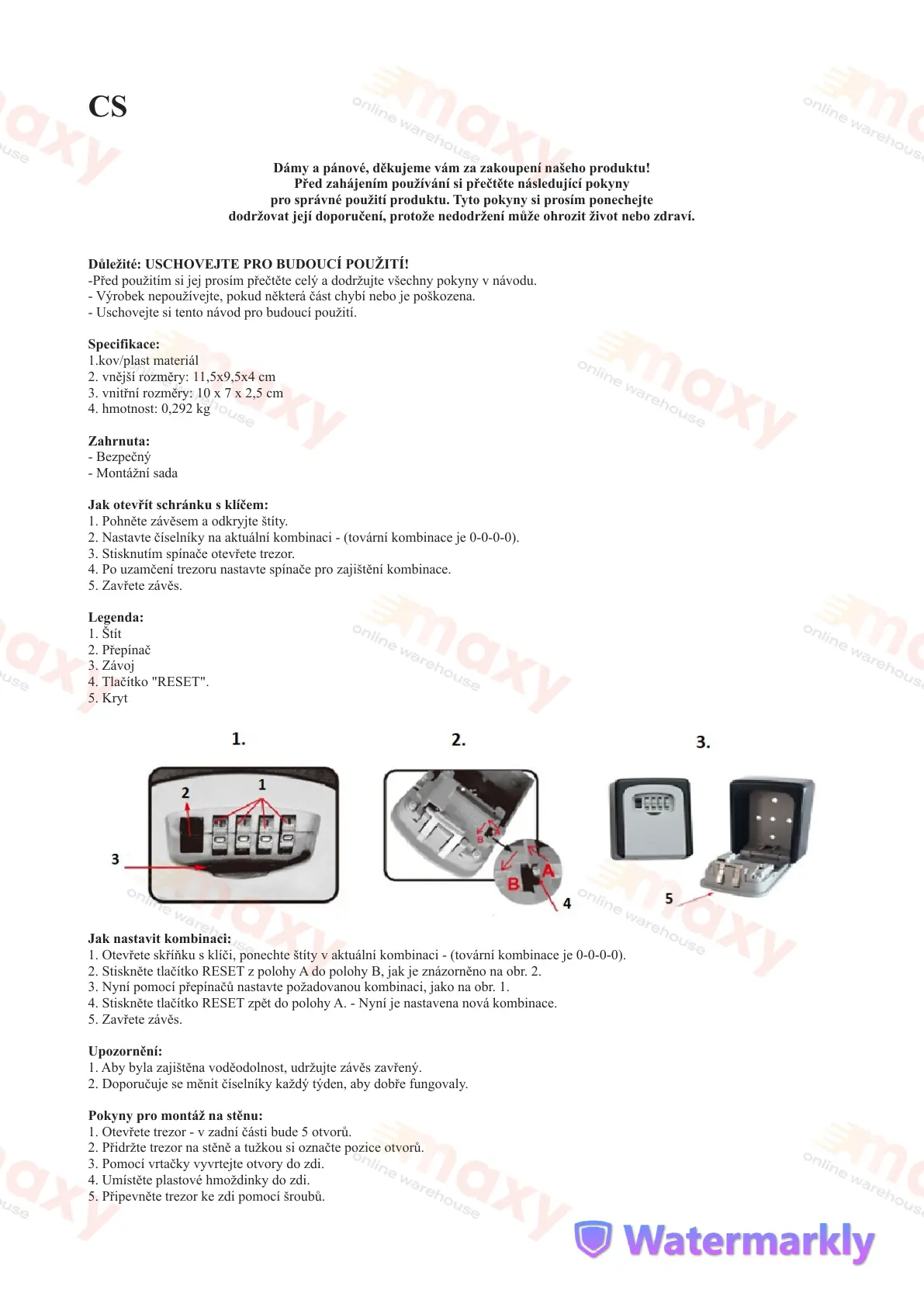 1. Otevřete skříňku s klíči, ponechte štíty v aktuální kombinaci - (tovární kombinace je 0-0-0-0).